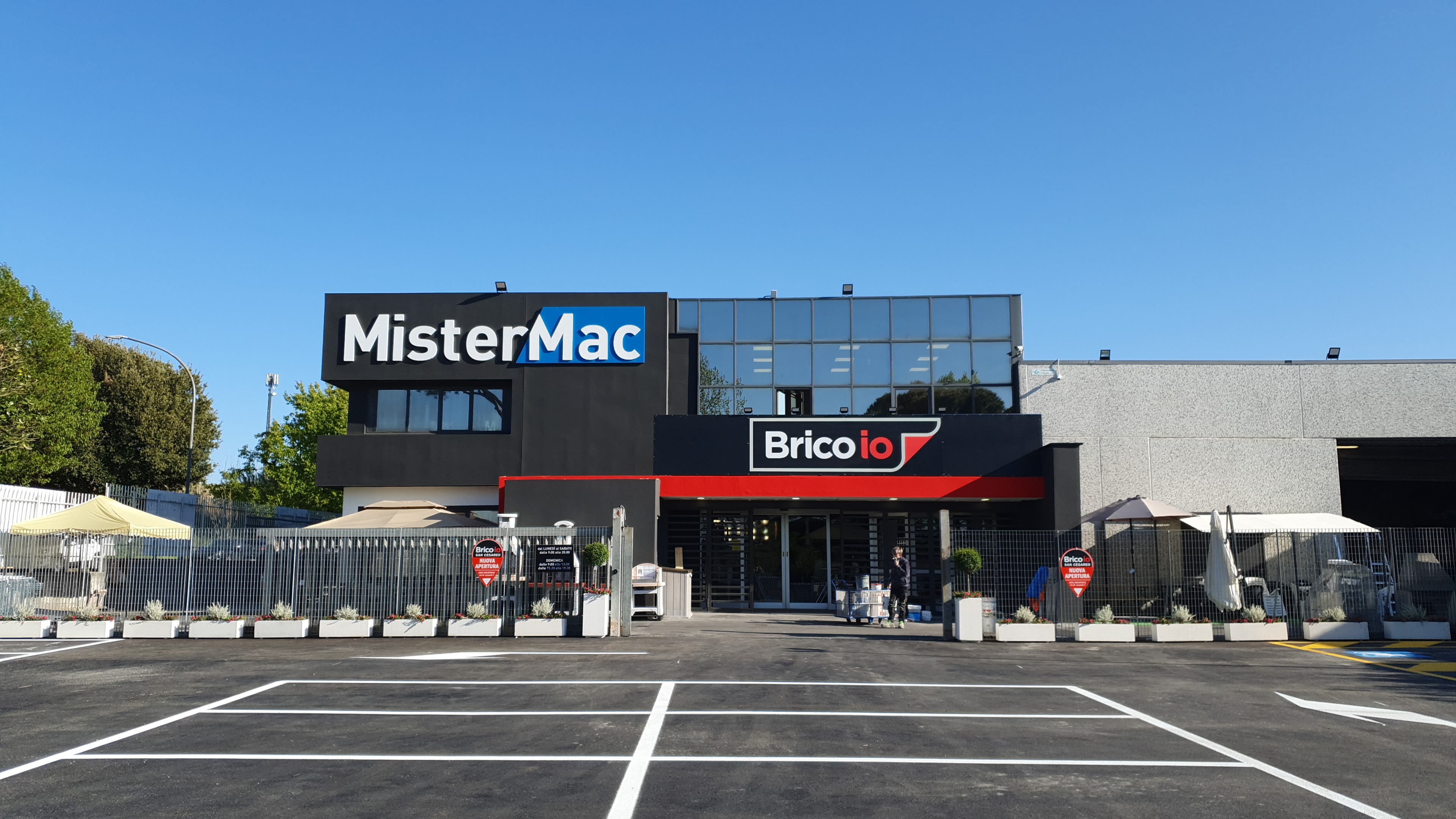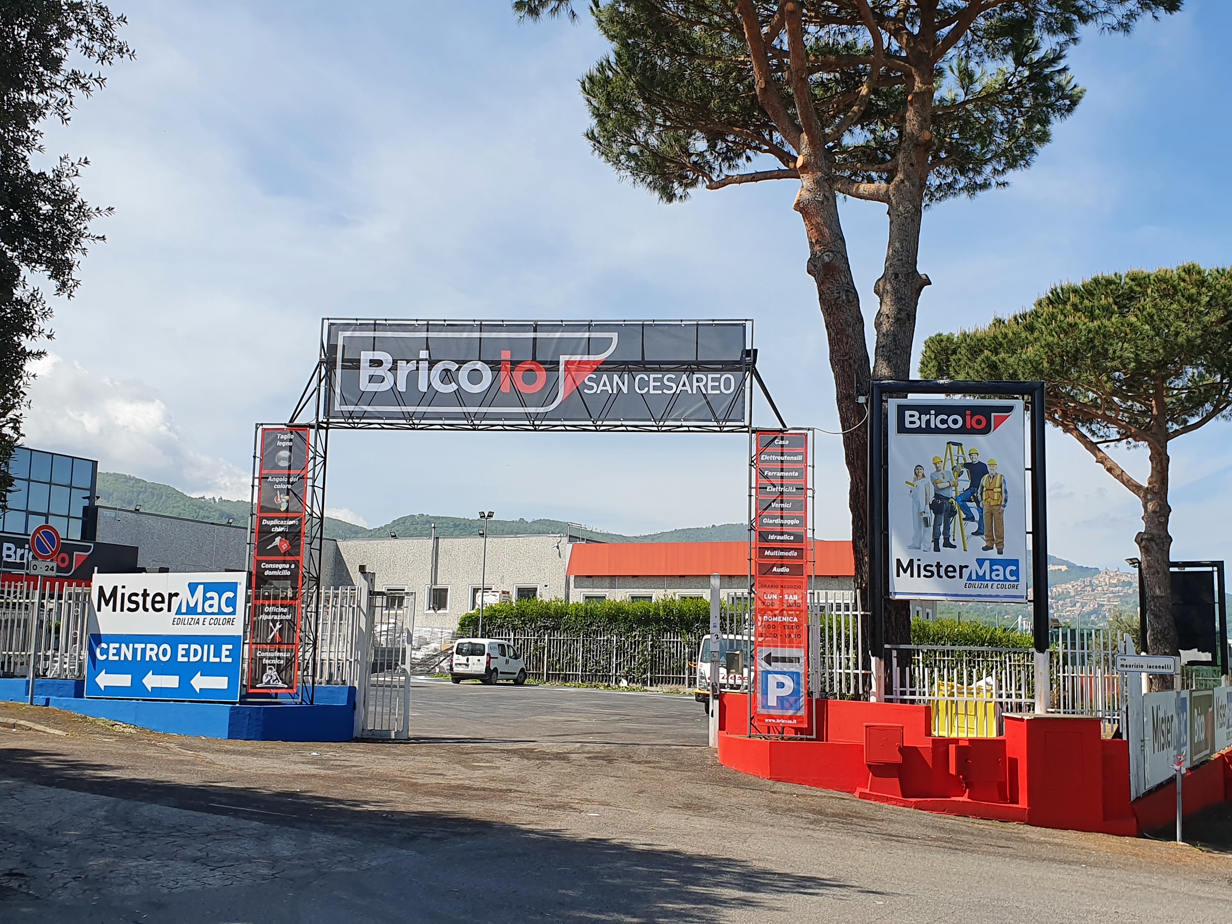Brico io a San Cesareo condivide la superficie di vendita e il parcheggio con MisterMac che da oltre 50 anni propone al professionista articoli nei reparti, pitture e decorativi, ceramiche, isolamenti termoacustici, malte e resine, pavimentazioni, ceramiche e sanitari, diventando il centro di riferimento per le imprese che operano nel settore.