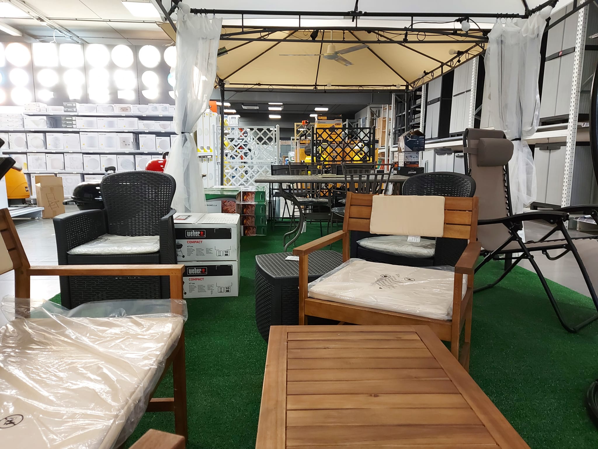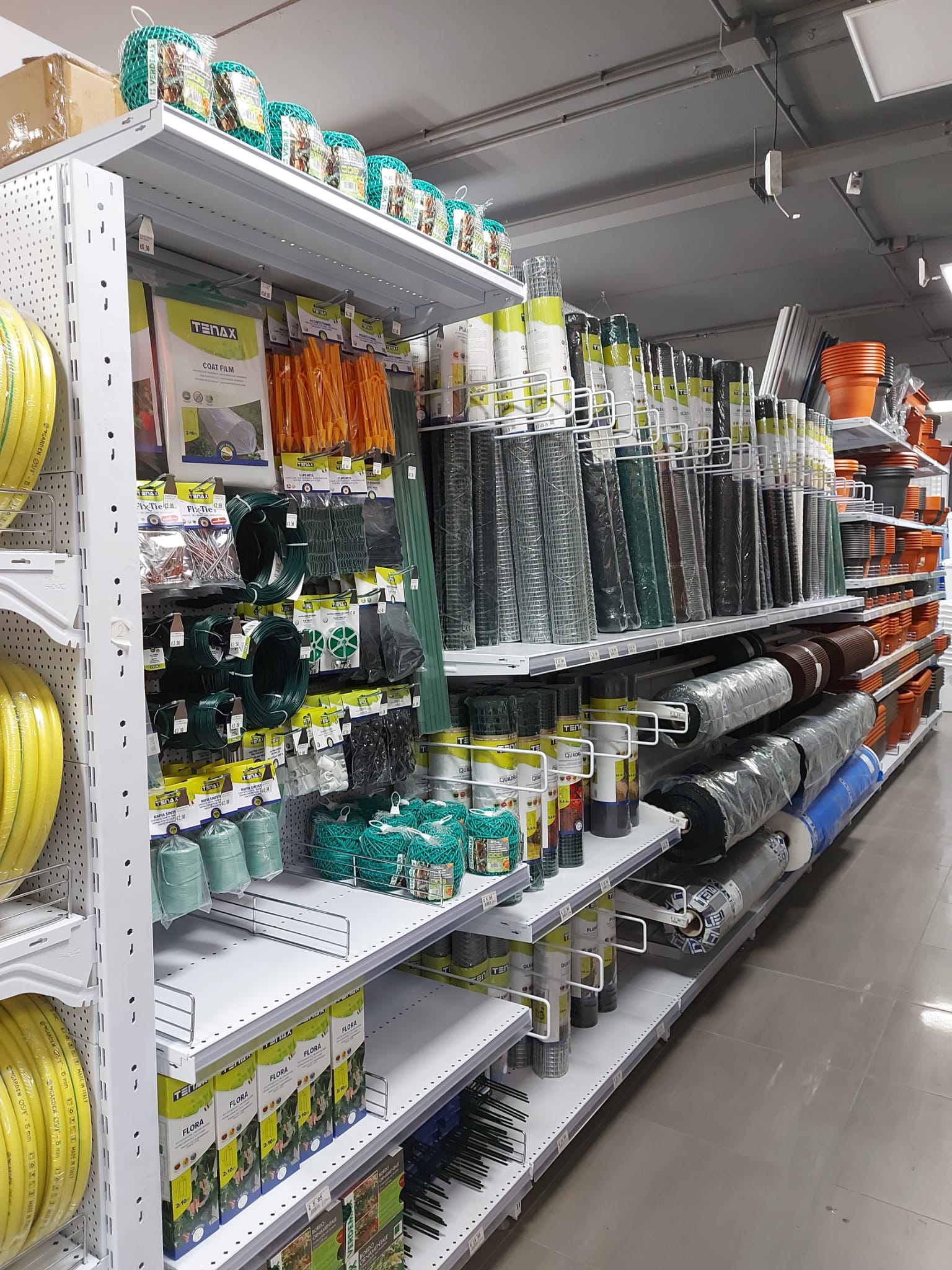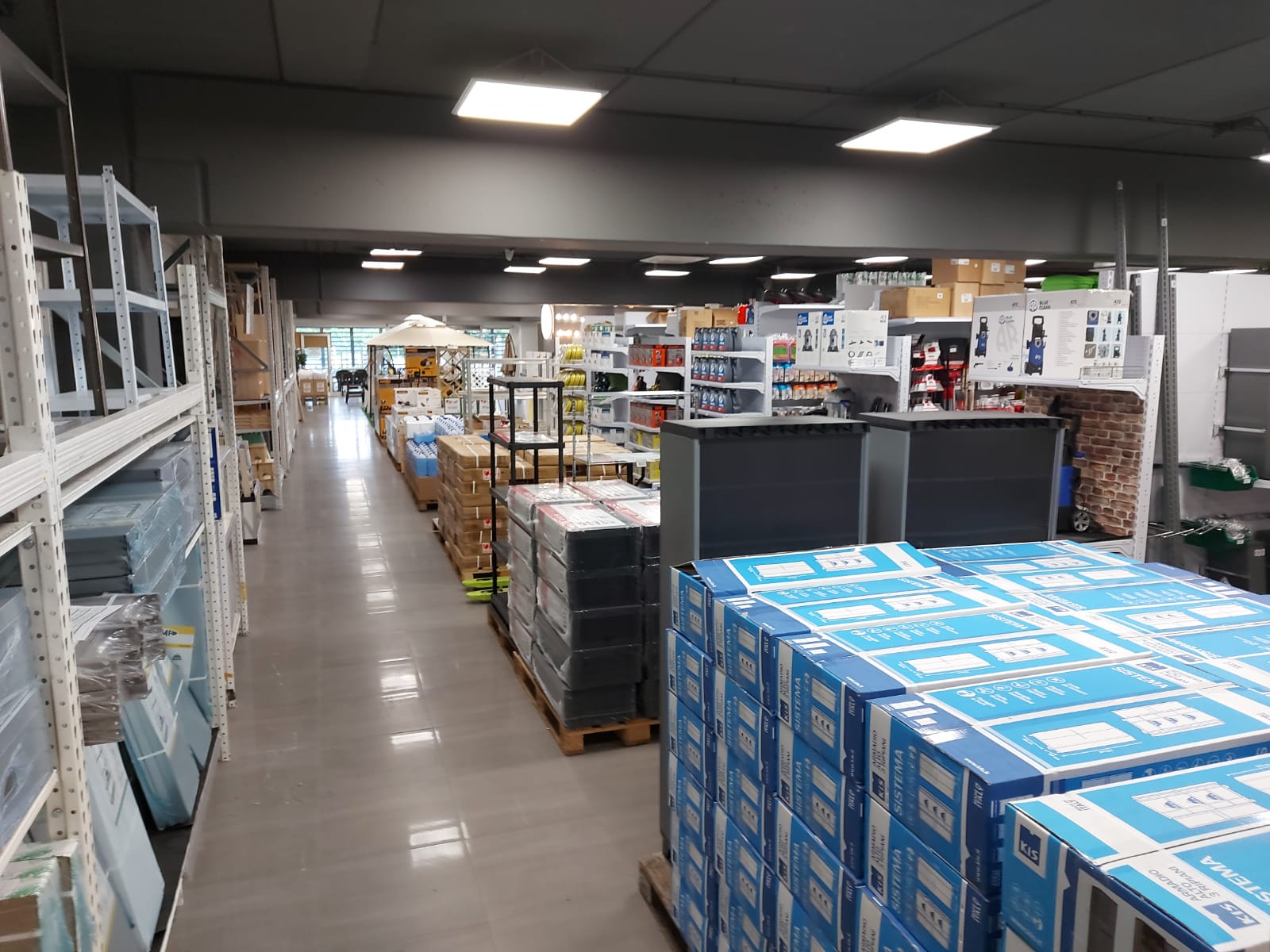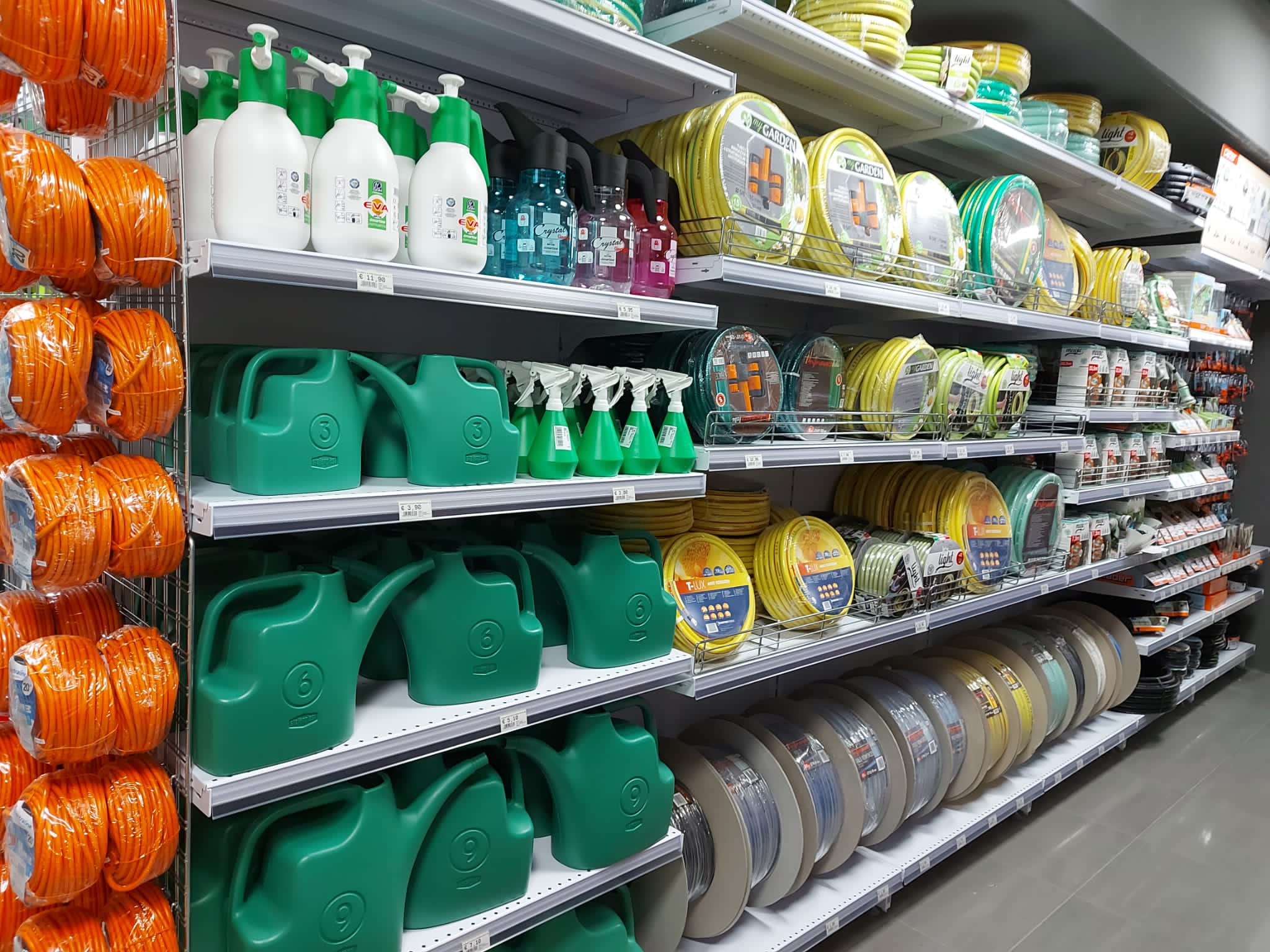 I reparti: ferramenta, utensileria elettrica e manuale, scaffali, decorazione, arredo bagno e accessori, idraulica, vernici e colle, legno, giardinaggio, elettricità e illuminazione, casa, autoaccessori.
