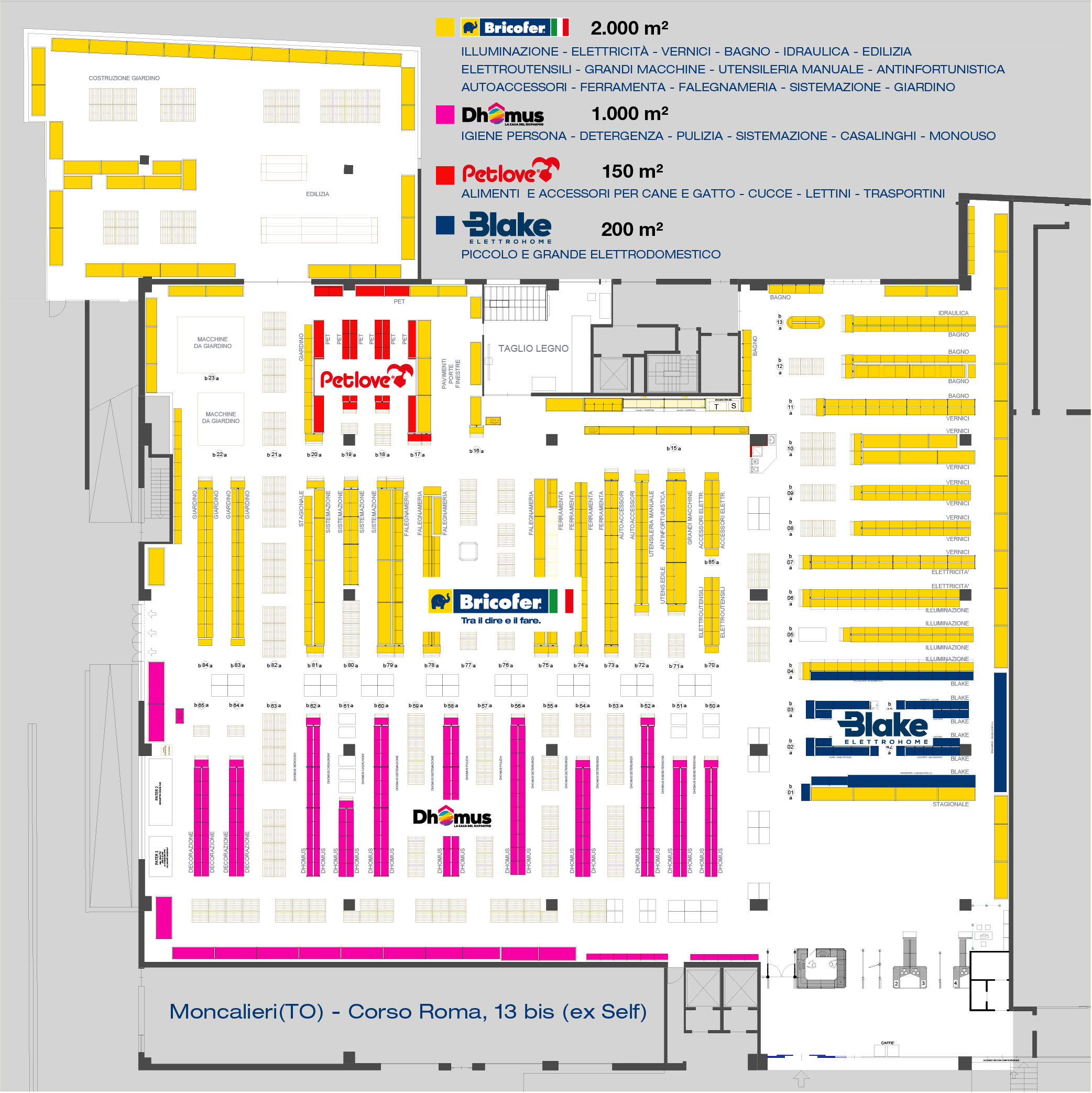 Il corner Blake da 200 mq ospita le migliori marche di piccoli e grandi elettrodomestici da incasso e libero servizio a prezzi concorrenziali; un ampio spazio è dedicato al marchio Dhomus con 1.000 mq destinati a prodotti per la cura della casa e della persona, dalla sistemazione alla detergenza; infine 150 mq espositivi sono rivolti ad articoli per animali in un’area riservata Pet Love.