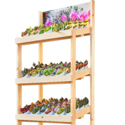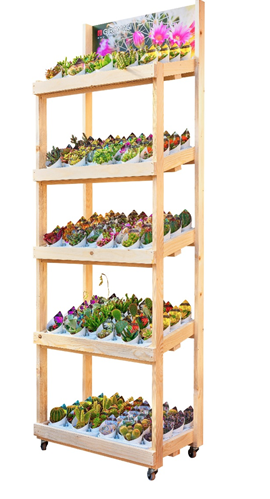 È un espositore versatile, facilmente trasportabile e leggero, in grado di accogliere molte varietà di piante in varie misure.
