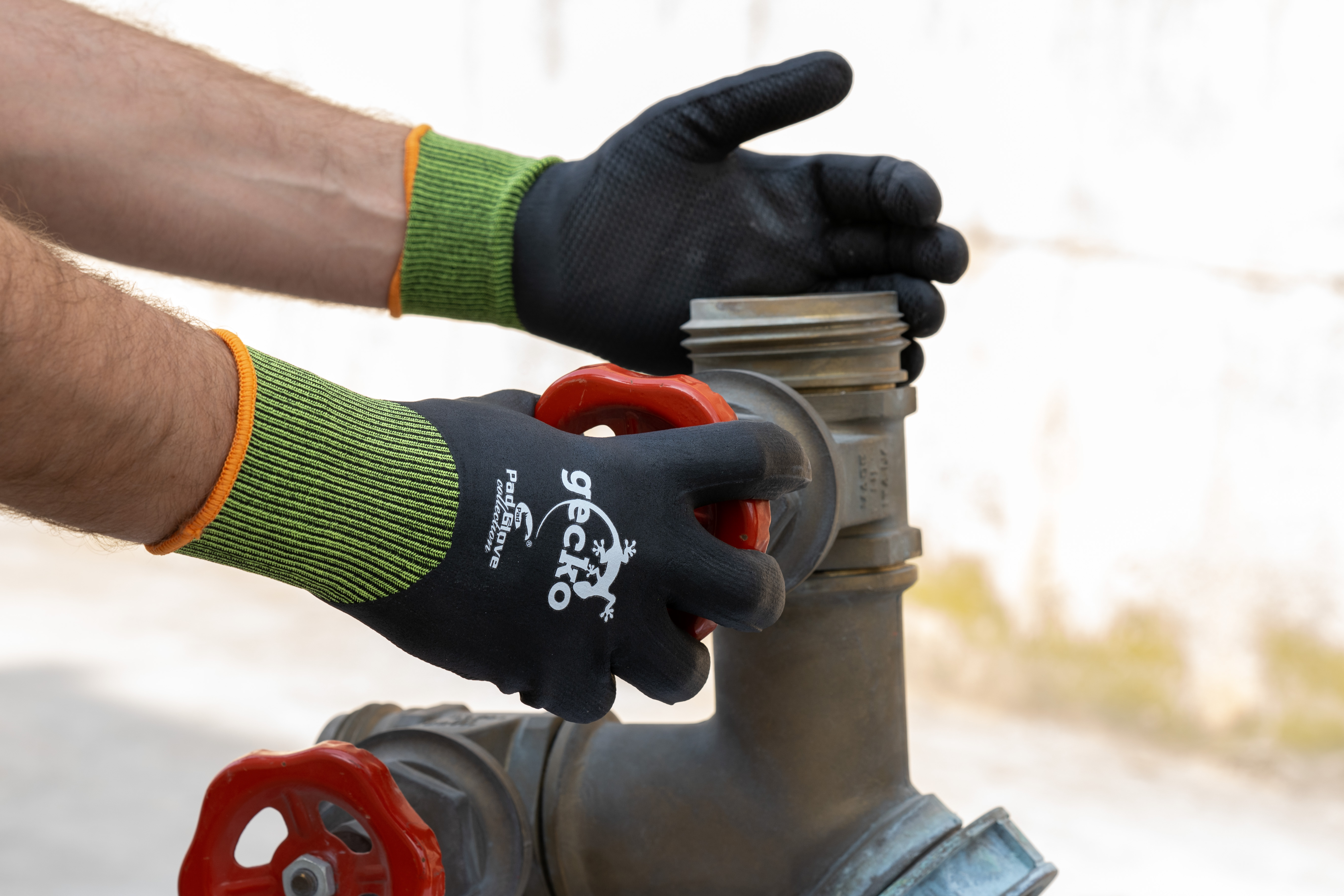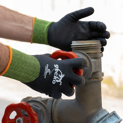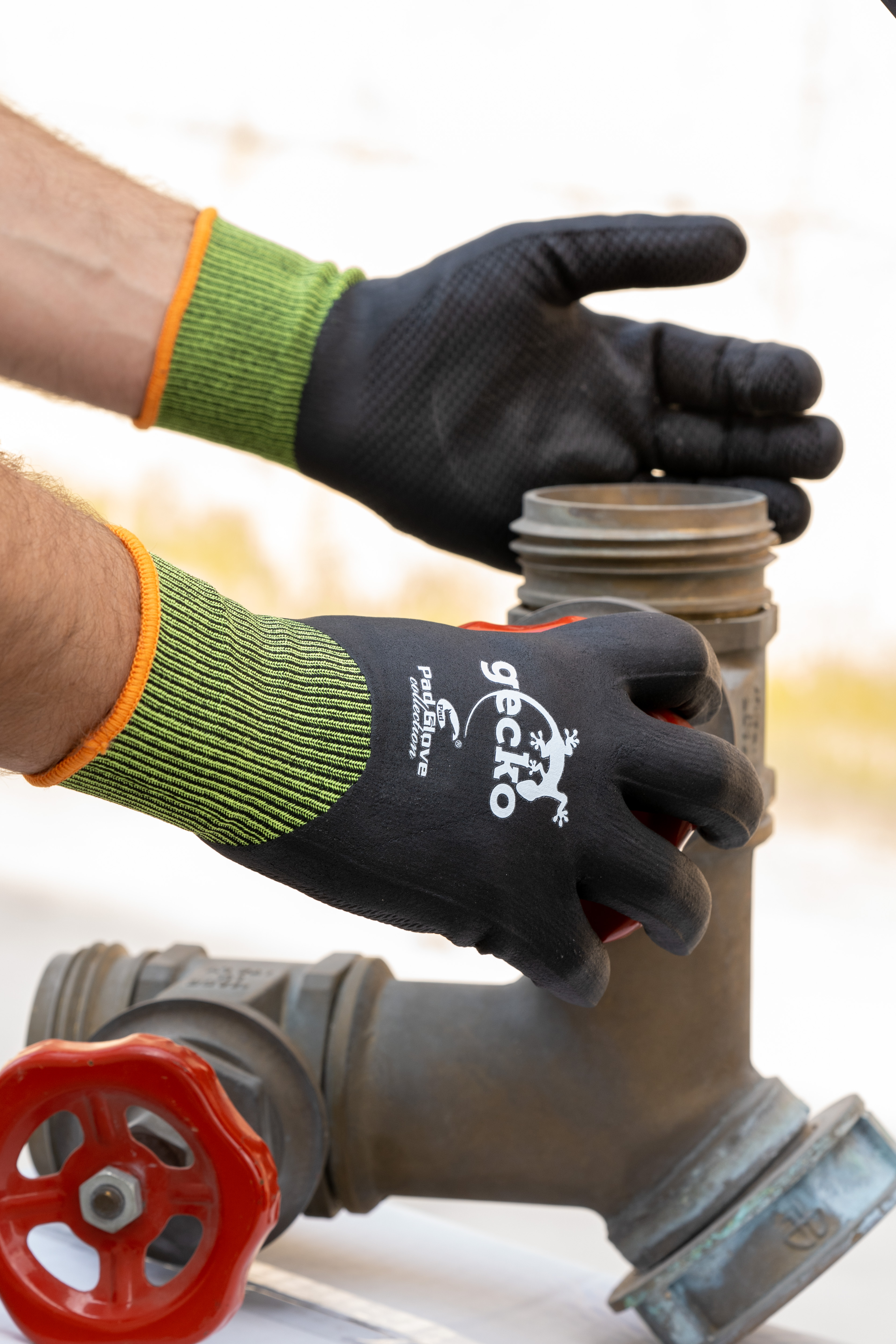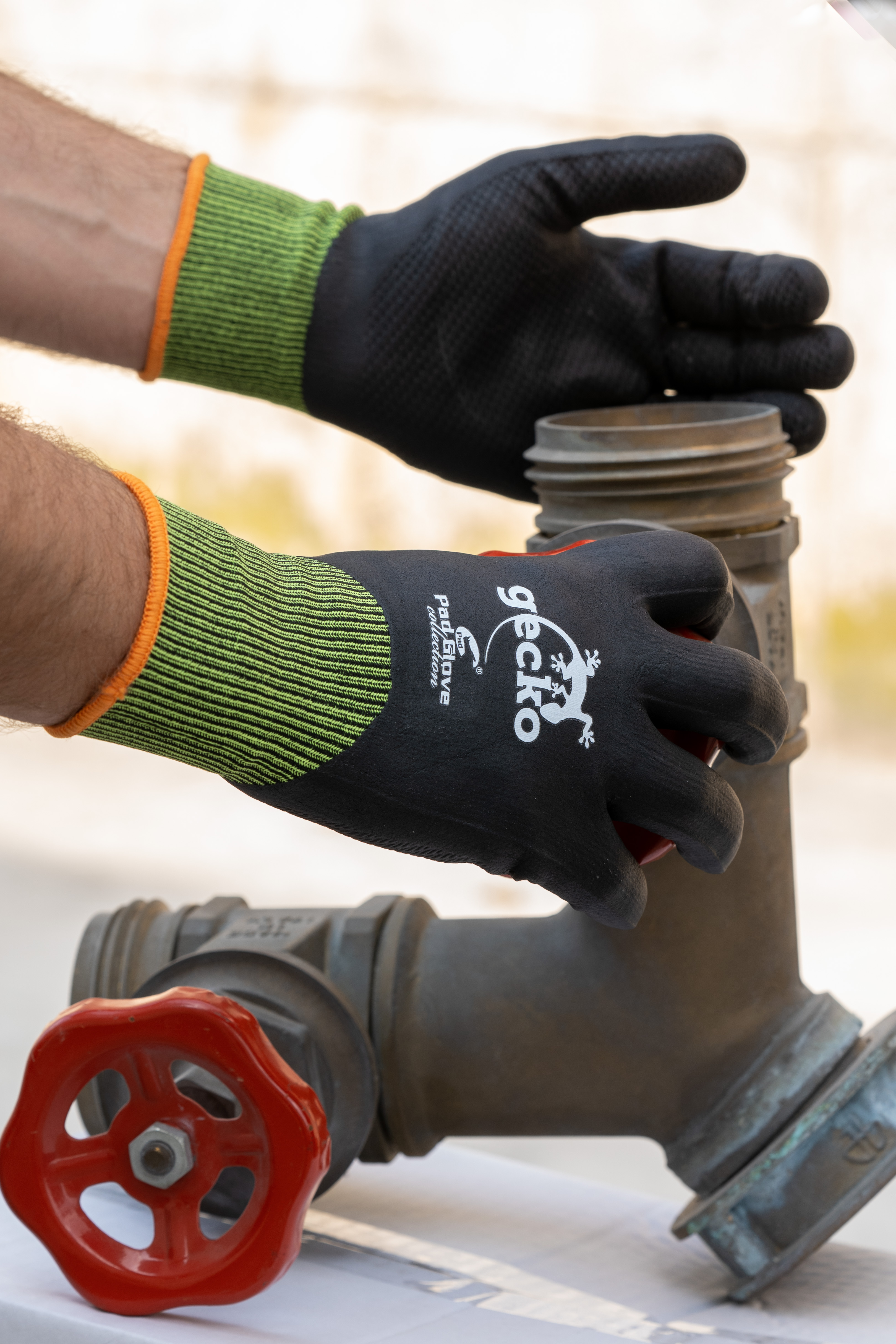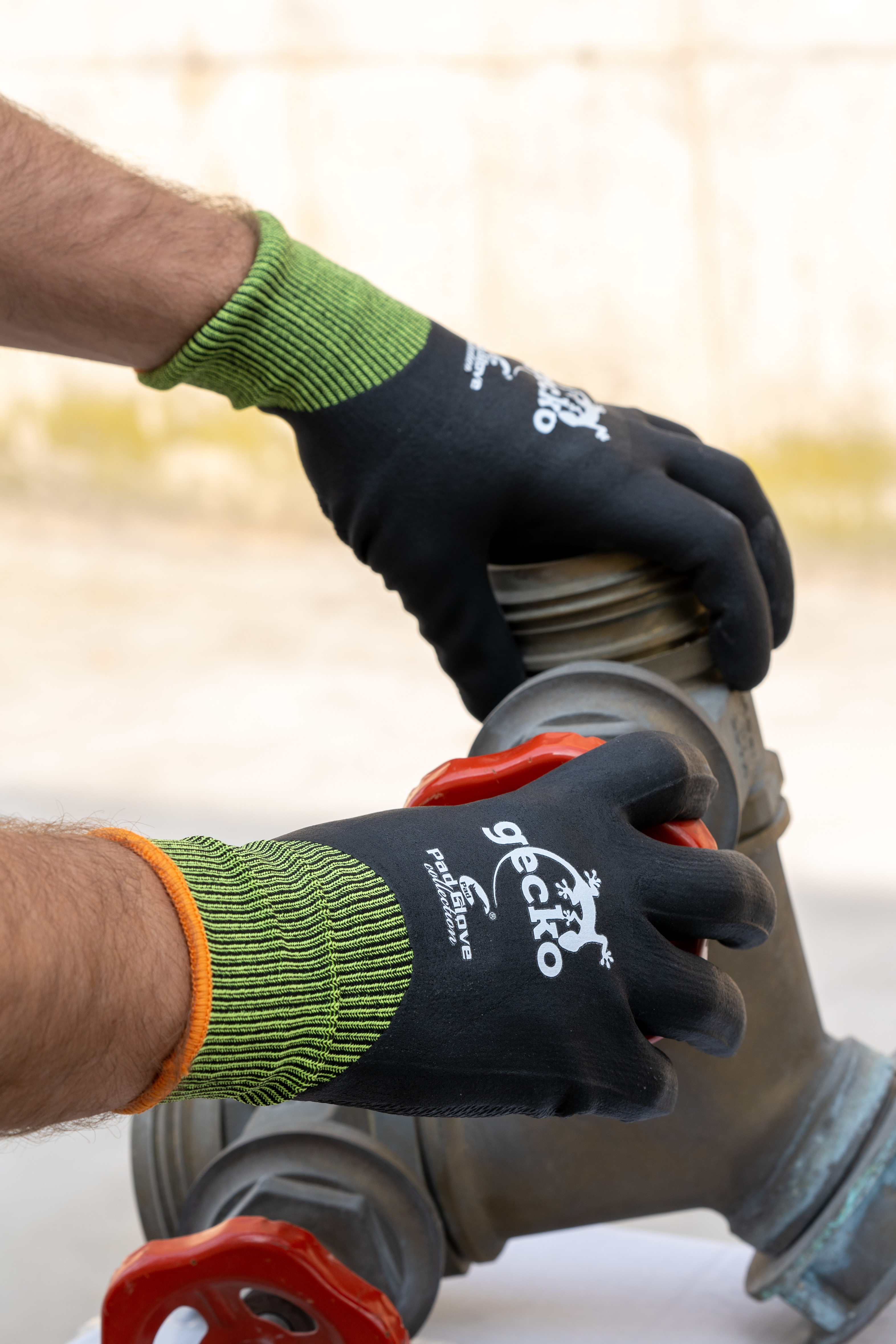 Proposto da Pad Gloves, il guanto è caratterizzato da un super grip che consente una maggiore presa anche in presenza di sporco, bagnato, olii e unto.