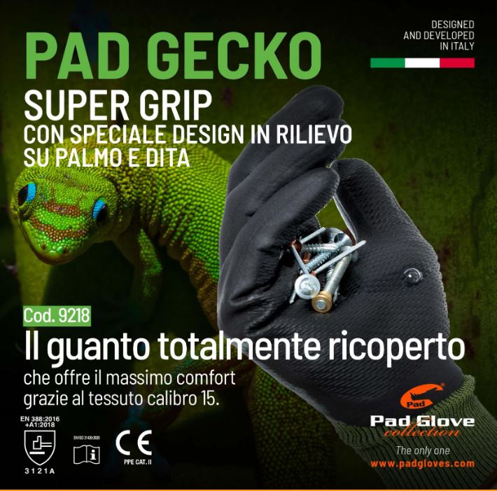 Pad Gecko è il guanto totalmente ricoperto che offre il massimo comfort grazie al tessuto calibro 15.