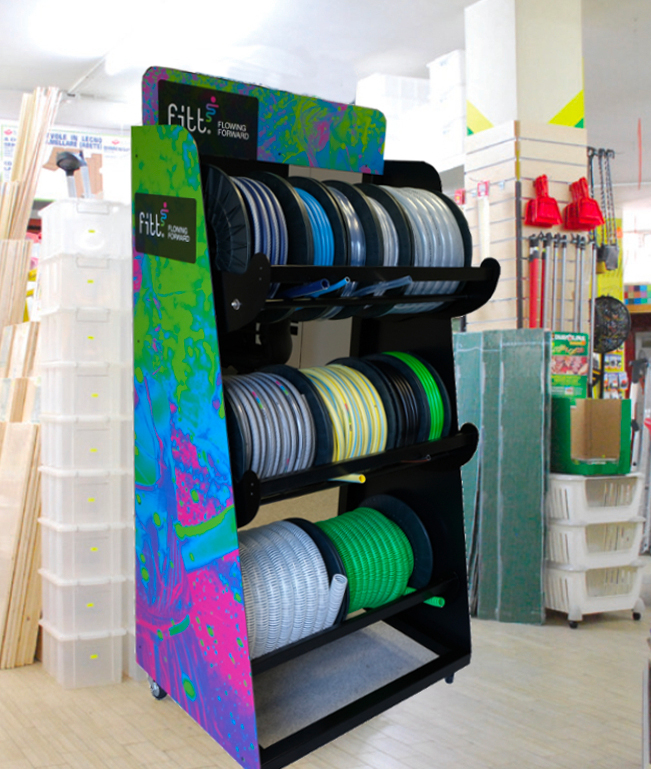 Per rispondere alle esigenze dei consumatori e di punti vendita di piccole e medie dimensioni, FITTha sviluppato Smart Combo, un espositore compatto e mobile per il servizio di tubi al taglio: una soluzione pratica, componibile e su misura.