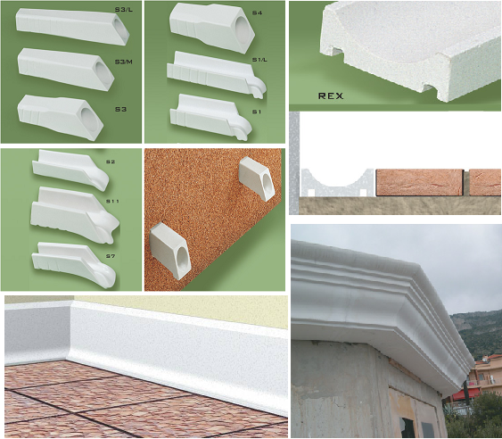 Cornici decorative di finitura di varie forme da utilizzare come greche o lesene.