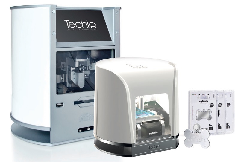 Techla è un innovativo sistema per l’incisione di medagliette sviluppato dall’italiana MyFamily, azienda tra i leader del settore pet, che consente di personalizzare il prodotto all’istante nel punto vendita. Con la lettura del codice a barre, la macchina riconosce il modello di medaglietta e i dati per il ritrovamento del pet o le frasi da dedicare a chi vogliamo prendono vita all’interno di Techla.