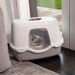 - Très Chic Indoor Filter munita di filtro anti-odore ai carboni attivi intercambiabile e di una porta basculante per i gattini più intimi e riservati.