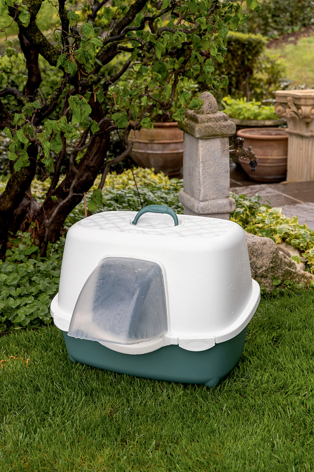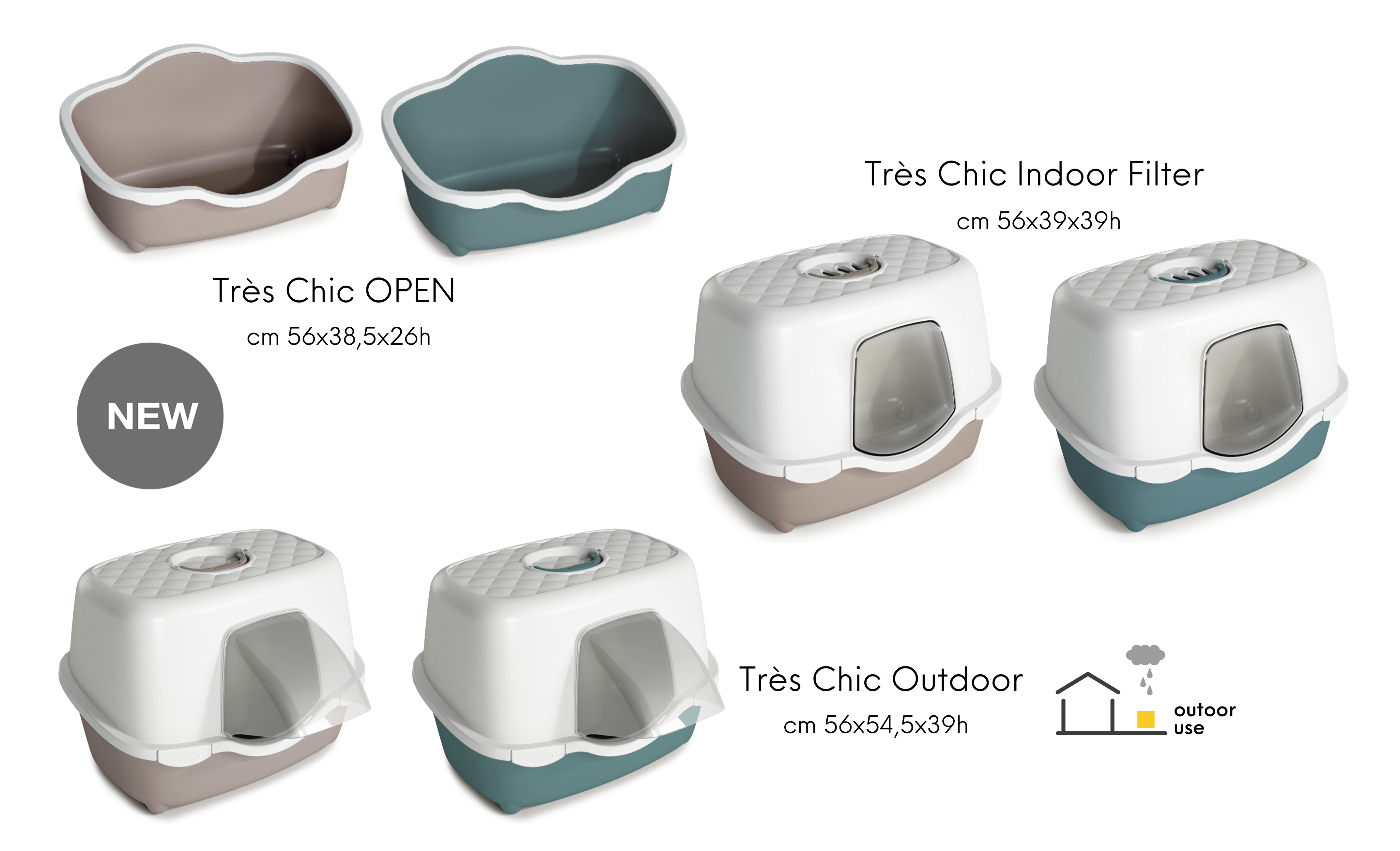 - Très Chic Outdoor toilette da esterno: il guscio superiore è dotato di una pensilina antipioggia che ne garantisce la protezione, studiata nella forma e nella trasparenza per dare maggiore comfort nell’utilizzo. Dentro casa, in veranda o in giardino, a tutti gli amici gatti il “servizio” è garantito!