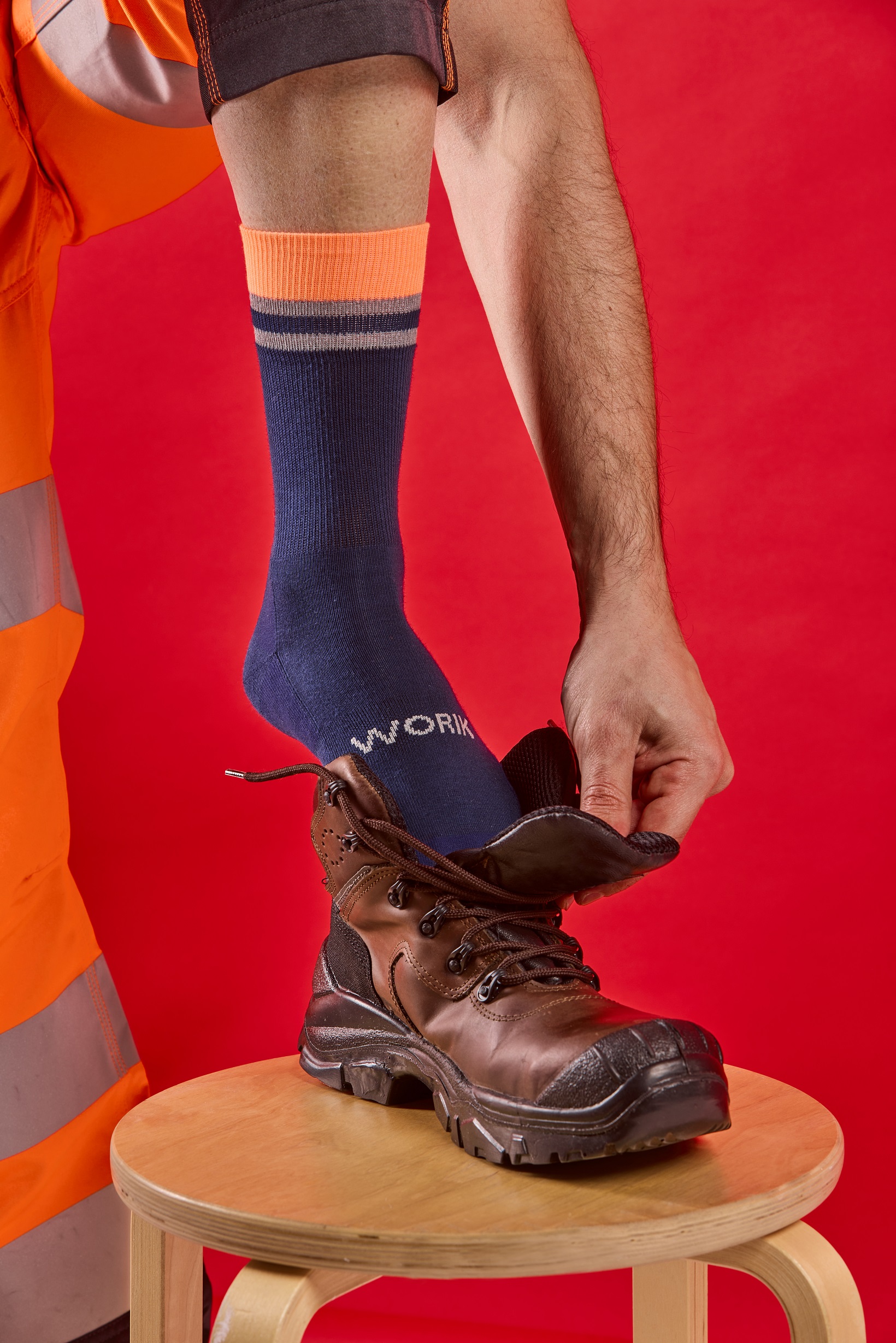 La calza è stata progettata, inoltre, con un effetto riflettente per essere ben visibile in condizioni di scarsa luce. Anche il cuscinetto ammortizzante anti sfregamento e concussione della zona plantare, differenziato per piede destro e sinistro, è funzionale a un uso continuativo e dinamico sul lavoro, soprattutto in caso di temperature calde.