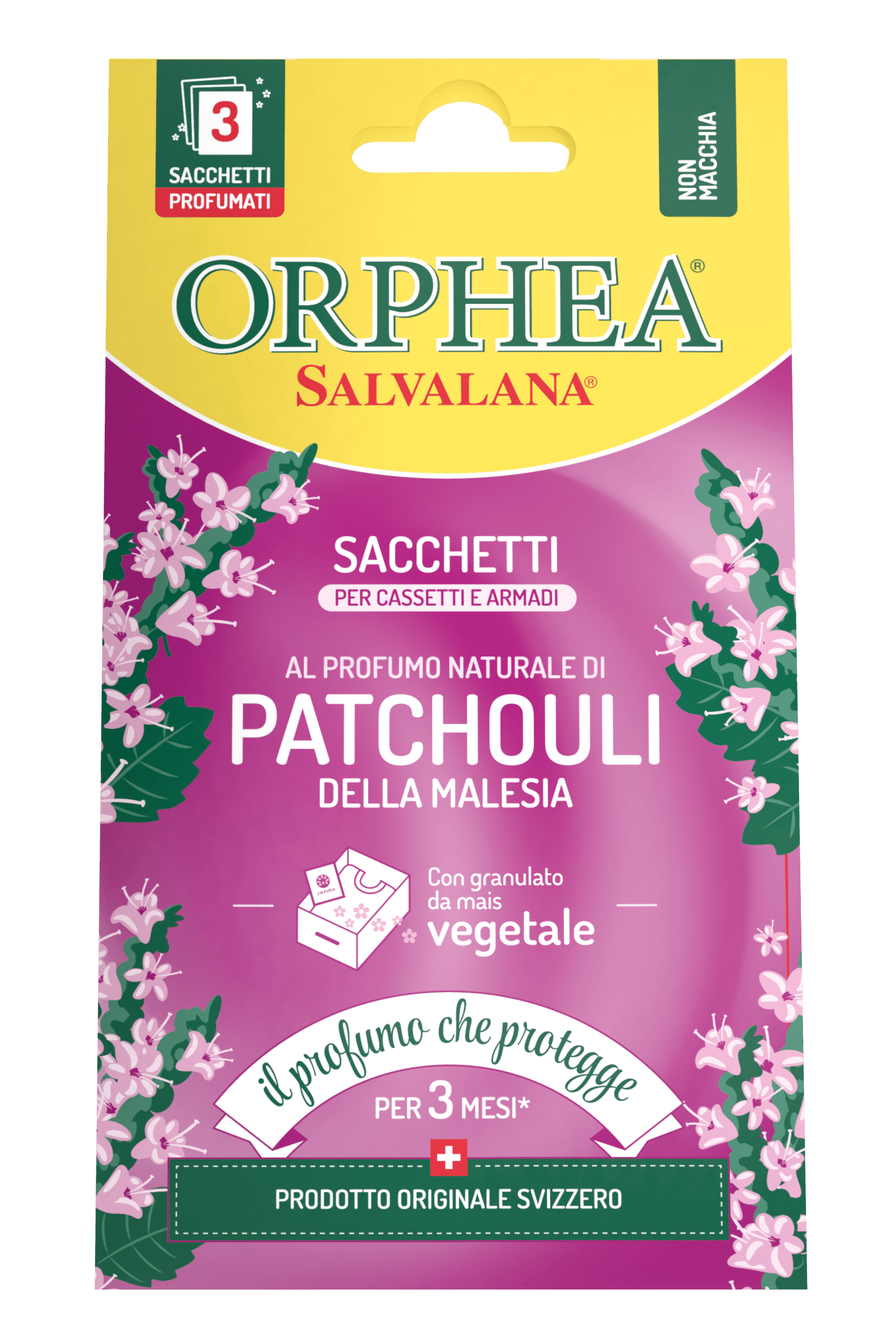 Per la primavera 2023 avremo a disposizione un nuovo alleato per la cura dei nostri capi più preziosi. I Sacchetti Profumati per Cassetti e Armadi, realizzati in tessuto non tessuto con granulato da mais vegetale, si arricchiscono di una nuova profumazione. A fiori e lavanda maillette si aggiunge infatti patchouli: tre profumazioni naturali e ricercate per proteggere e inebriare i tessuti in maniera efficace e duratura nel tempo (confezione 3 sacchetti).