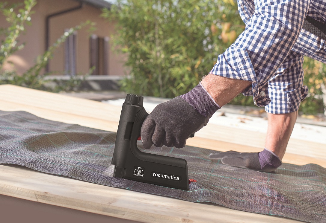 Dal catalogo romeo maestri, la fissatrice cordless Rocamatica®, leggera e compatta, è alimentata con una batteria ricaricabile con tecnologia al litio.