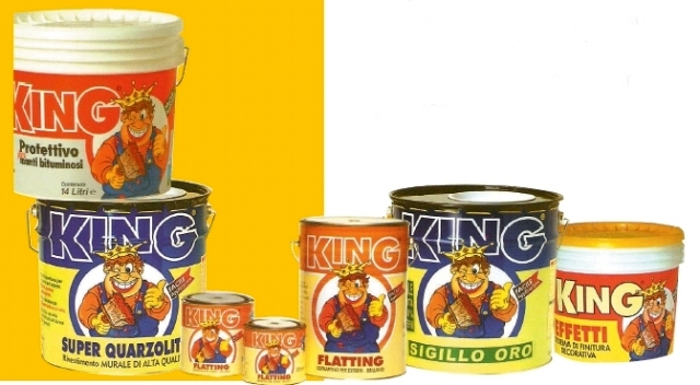 La serie King comprende pitture murali ai silicati a elevato effetto coprente, le quali sono ancoranti, penetranti e traspiranti, oltre che resistenti a umidità, agenti atmosferici e muffa. Alto potere coprente e ancorante anche per le pitture ai silossani, che garantiscono traspirabilità, idrorepellenza, basso assorbimento dello sporco.