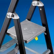 Nuova Marea di Svelt è la scala in alluminio con guardacorpo per utilizzo hobbistico o domestico intensivo. Costruita in alluminio estruso nervato ad alta resistenza meccanica, è dotata di montanti in profilo rettangolare 50x25 mm ergonomici nell’impugnatura. Prodotta secondo la normativa europea En131 e conforme all’utilizzo secondo il D.Lgs.626/94, è inoltre munita di cerniere di apertura ergonomiche in pressofusione di alluminio leggere e con impatto visivo unico, che danno stabilità e rigidità a tutta la struttura. Nuova Marea è anche fornita di vaschetta portaoggetti, viti e ganci o porta secchio, di maniglia di presa per la salita e di piedini in pvc maggiorati, antisdrucciolo. È provvista, infine, di gradini piani ribordati antisdrucciolo di 8 cm e di cinghia di sicurezza antiapertura accidentale.