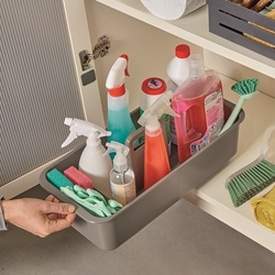 Il sottolavello Snips è ideale per organizzare detergenti, spugne, spazzole, guanti, piccoli attrezzi da tenere a portata di mano. Lo si usa in casa, in garage, in giardino: facile da movimentare grazie all’ampia maniglia e alle 4 ruote. Utile per tenere a portata di mano gli accessori per la cucina o la lavanderia, ma anche per riporre tutti i prodotti per la toilette dell’animale domestico, la pulizia dell’auto o il giardinaggio, adatto a tutte le attività indoor e outdoor. Facile e pratico da pulire.