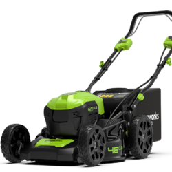 Il rasaerba GD40LM46SP di Greenworks della linea 40 V è dotato di trazione e costruito con un carter in acciaio da 46 cm di larghezza. È potente e di facile utilizzo grazie alla sua regolazione di velocità variabile.