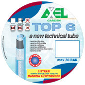Fra le novità Axel Group spicca il tubo da irrigazione TOP 6: grazie al doppio rinforzo in tessuto, retinatura magliatura e ai sei strati che lo compongono, abbina a grandi prestazioni di utilizzo una maneggevolezza unica.