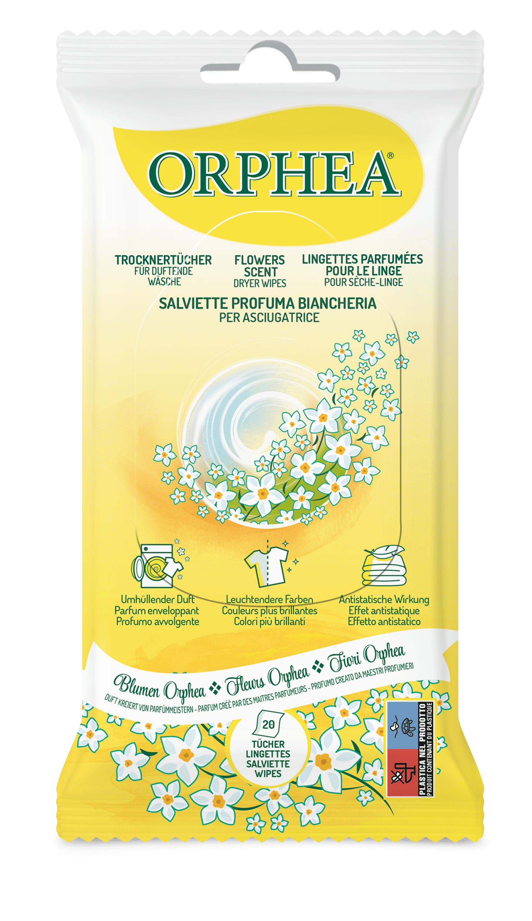 Grazie alle salviette per asciugatrice Orphea il bucato profumerà a lungo e si potrà dire addio allo sgradevole odore di umido tipico causato dall’asciugatrice.