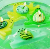 Davvero originale e innovativo il set di quattro candele galleggianti a forma di rana, proposto da Tag, Trade Associates Group, marchio distribuito da Colony.