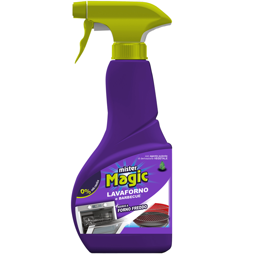 Adatto per forni a gas o elettrici, Mister Magic Lavaforno e Barbecue svolge la sua azione pulente già al momento dello spruzzo - attraverso la sua azione schiumogena - il prodotto inizia da subito a sgrassare, detergere ed igienizzare senza lunghe attese o risciacqui. Ideale anche per la pulizia del barbecue, questo prodotto – grazie ad agenti di derivazione vegetale e privo di soda caustica – può essere impiegato efficacemente anche per detergere teglie e griglie. Altra peculiarità del Mister Magic Lavaforno e barbecue è la sua duttilità e la possibilità di impiego per pulire anche i vetri di stufe e camini.