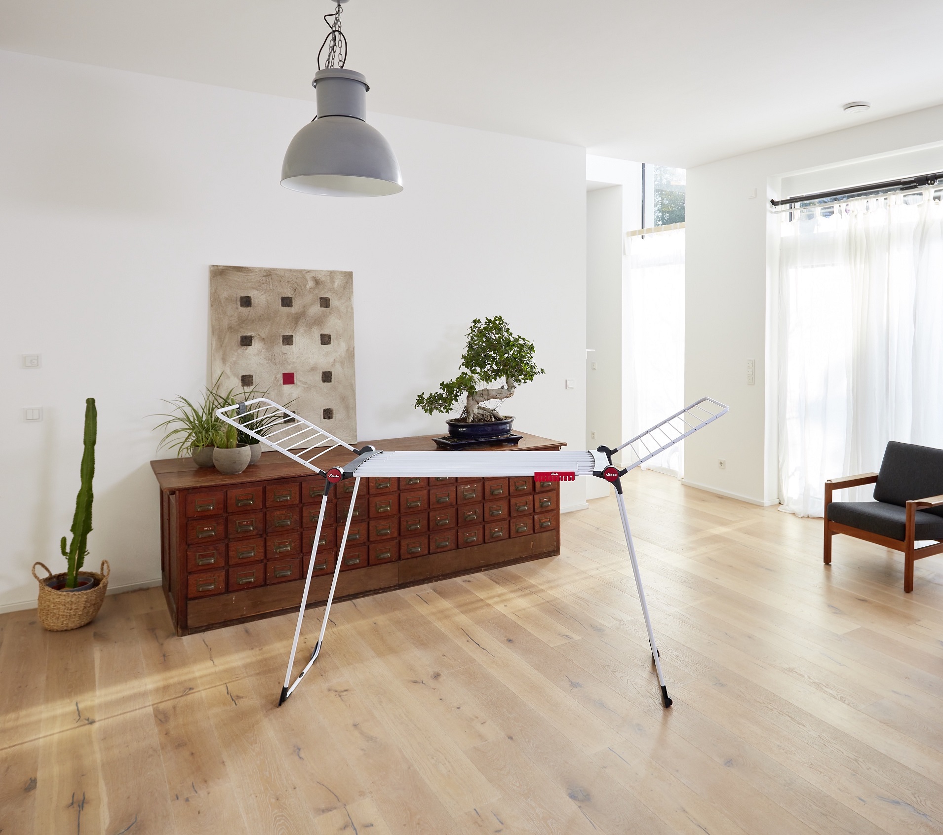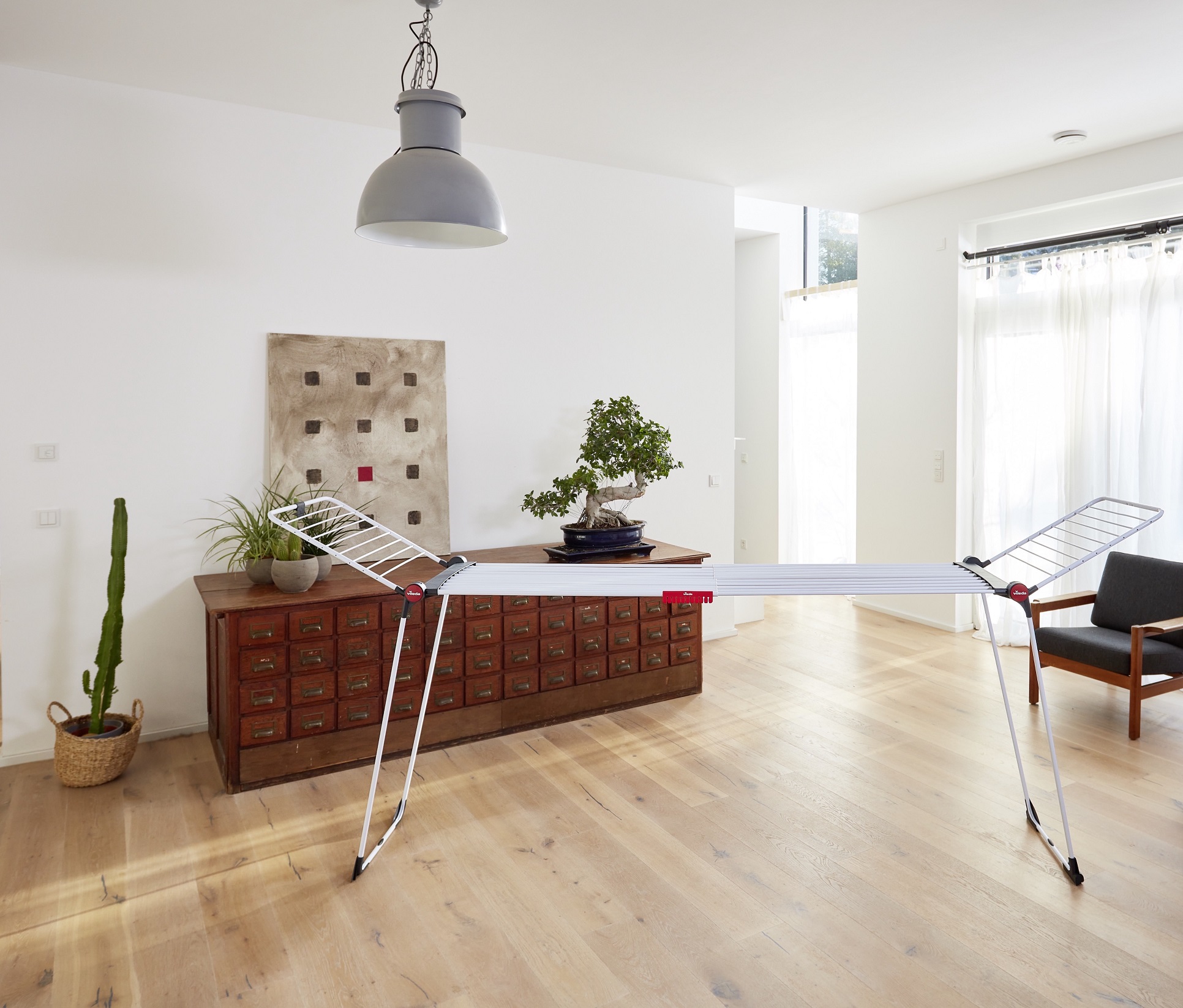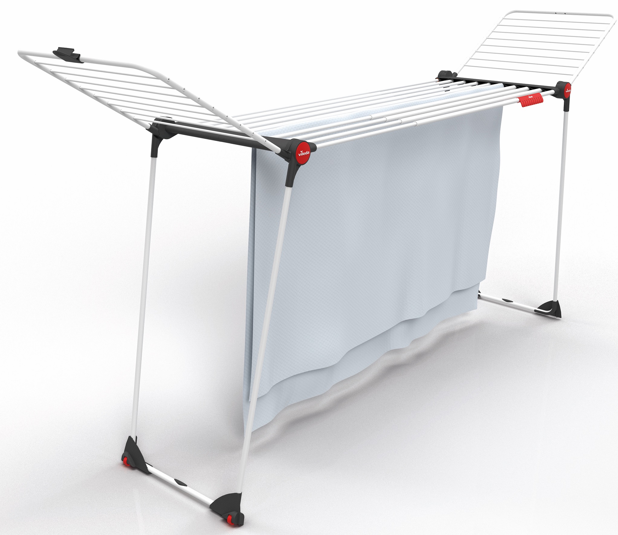 Gli stendibiancheria Vileda Infinity Flex (in foto) e Vileda Infinity Compact consentono di ottimizzare lo spazio di stenditura in base alle proprie esigenze. Realizzati in acciaio, con griglia centrale telescopica estensibile da 117 fino a 205 cm, consentono di stendere agevolmente anche capi ingombranti come tovaglie o lenzuola senza piegarli, riducendo in questo modo il tempo di asciugatura. I piccoli capi possono essere posizionati nel pratico accessorio, mentre l’altezza della griglia di 1 metro da terra evita che i capi tocchino il pavimento.