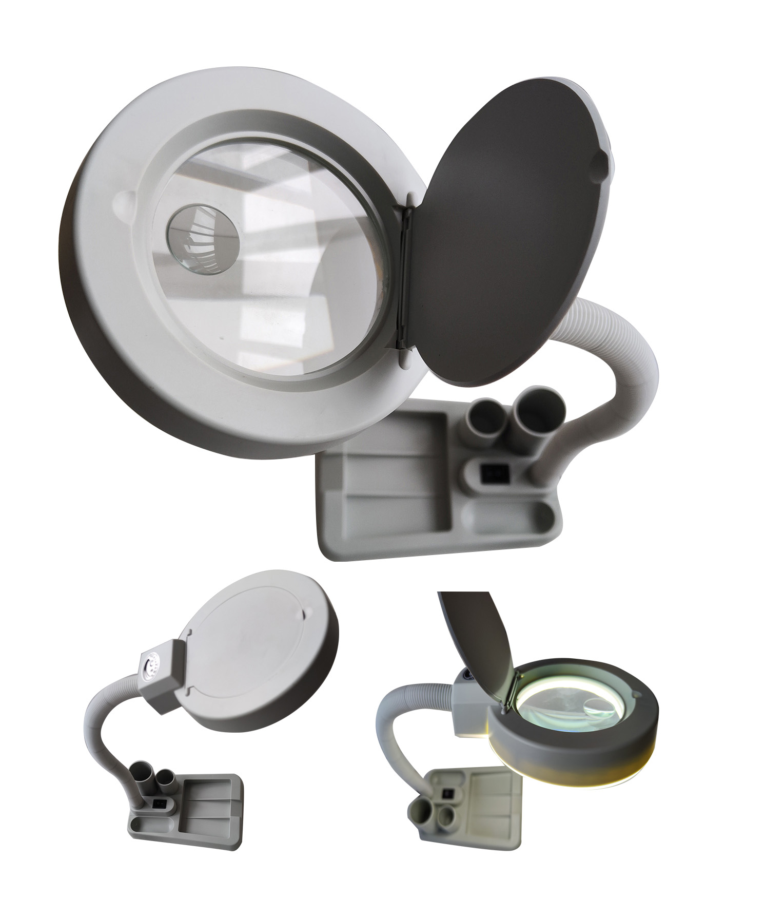 Grazie ai suoi 28 led sviluppa una potenza di luce fredda pari a 9 W (60 W delle vecchie lampadine a incandescenza) equivalente a un fascio luminoso di 900 lumen. La durata indicativa dei led è di circa 5000 ore, la lente consente ingrandimenti fino a un valore di 5 X, il braccio snodato consente di posizionare la lente a varie altezze e angolazioni.