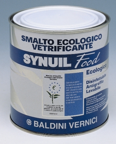 Come tutti i prodotti Baldini, anche Synuil Food è certificato Ecolabel. Si tratta di uno smalto inodore idoneo anche per ambienti contenenti alimenti. Antigraffio e disinfettabile, è lavabile con i normali detergenti non abrasivi e idoneo al contatto con acqua potabile. Questa pittura per finitura in dispersione acquosa, monocomponente e a essiccamento fisico, è semilucida e acrilica. Conforme alla direttiva europea 2004/42, rispetta la classificazione VOC inerente le pitture lucide per pareti e soffitti interni.