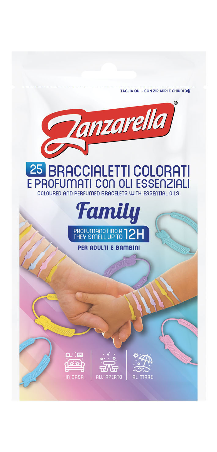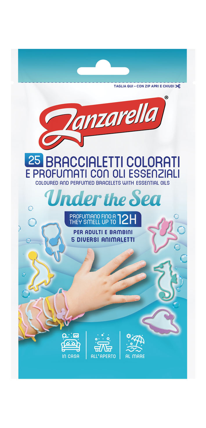 I braccialetti Zanzarella by Coswell per adulti e bambini sono colorati e profumati con oli essenziali in due simpatiche versioni: Family e Under the Sea.
