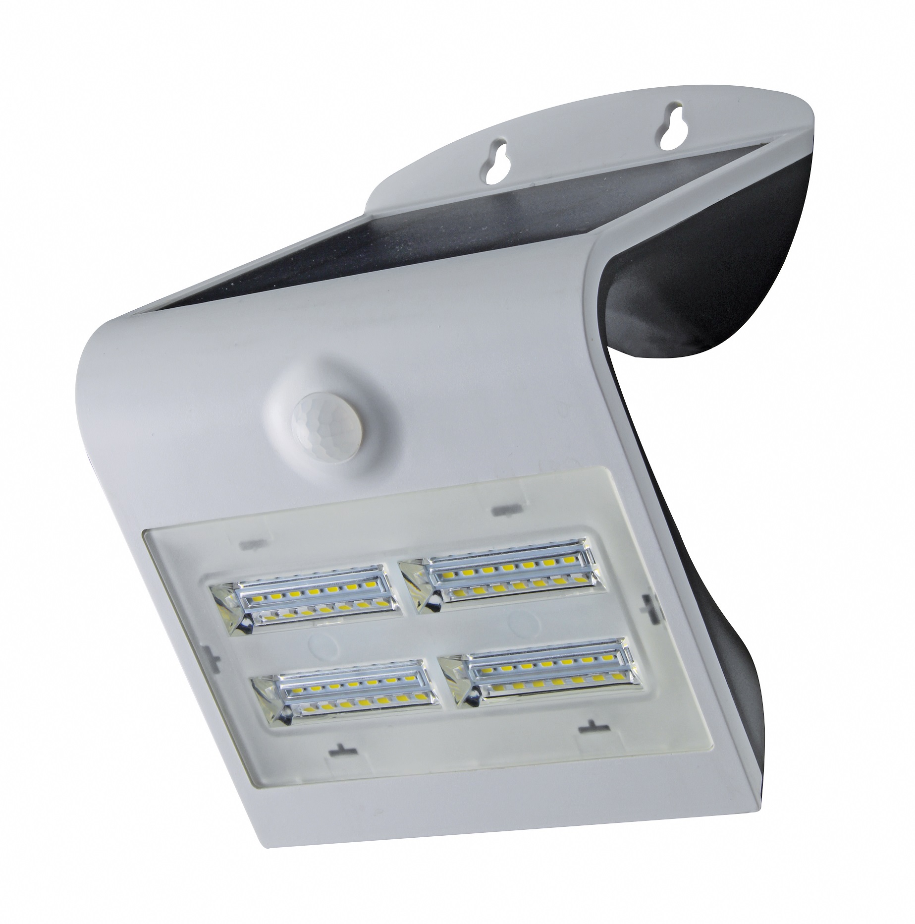 Lampada solare bianca da esterno con sensore PRO400 di Valex. Caratteristiche tecniche: grado di protezione IP65; luce naturale 4000 °K; sensore crepuscolare e di movimento; angolo del sensore 120°; luce di cortesia posteriore. Dimensioni 240x213x110 mm.