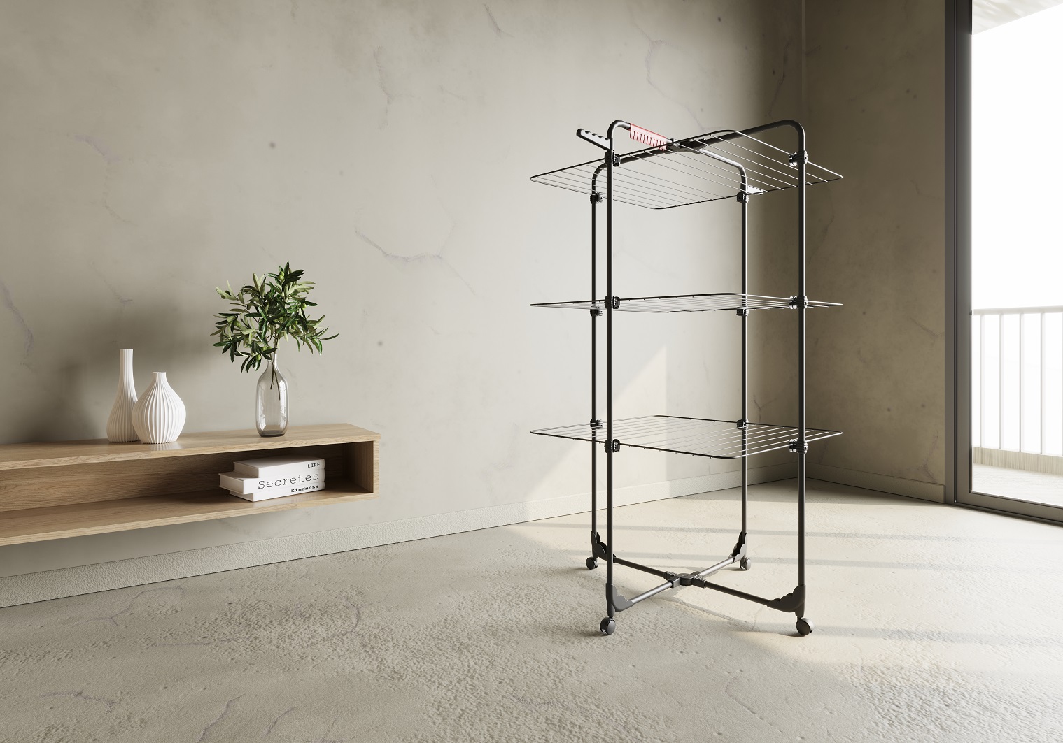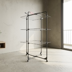 Vileda Mixer 3 Ultimate è lo stendibiancheria a torre verticale, ideale per chi desidera una soluzione modulabile e salvaspazio, senza rinunciare a un tocco di eleganza garantito dalla finitura nero opaco.