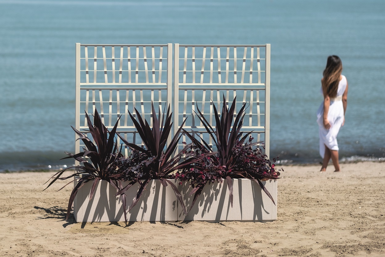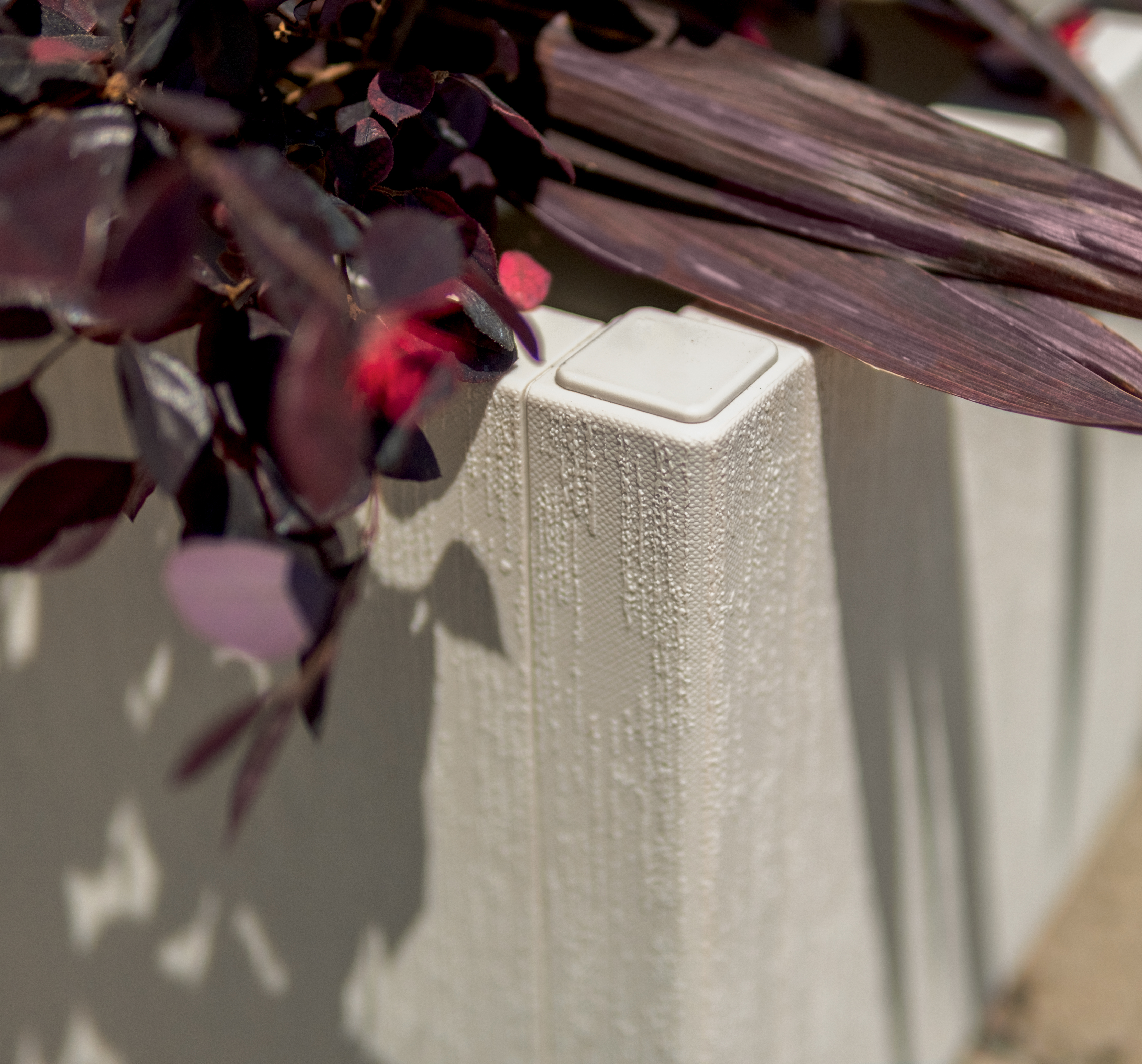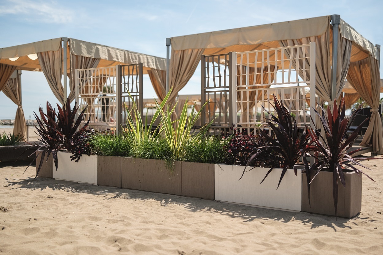 Dotata di un fondo drenante e resistente agli agenti atmosferici, la nuova fioriera è disponibile nei colori gesso, grafite, verde oliva e tortora, nella dimensione 36x36x35h cm senza spalliera e per un’altezza di 140 cm con spalliera.