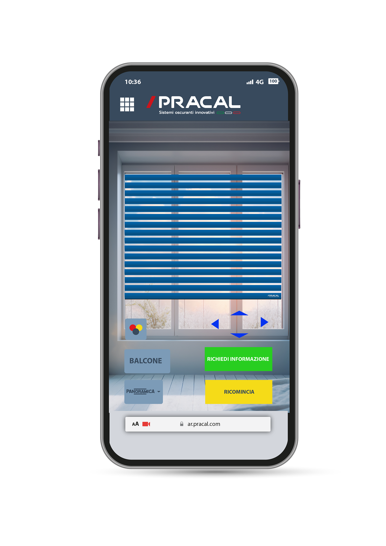 Per gli amanti del fai da te, offriamo un'esperienza di selezione unica: scopri Panoramica in Realtà Aumentata su ar.pracal.com. La nostra piattaforma digitale rende l'esperienza di utilizzo rapida, pratica e completa. Provare la tapparella direttamente a casa tua non è mai stato così semplice e divertente.