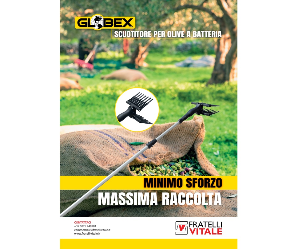 Con una velocità di 1.000 battiti al minuto, assicura un'efficace rimozione delle olive senza danneggiare la pianta.