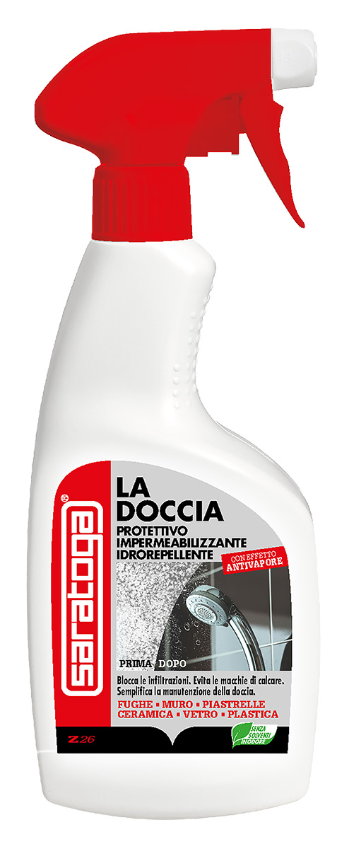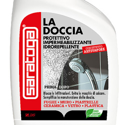 Se usato regolarmente, Saratoga “La Doccia” mantiene salubri e pulite le cabine docce: minimizza i segni del calcare che opacizzano le pareti in vetro o in policarbonato, evita la formazione di calcare sulle parti cromate e blocca la comparsa di eventuali efflorescenze saline.