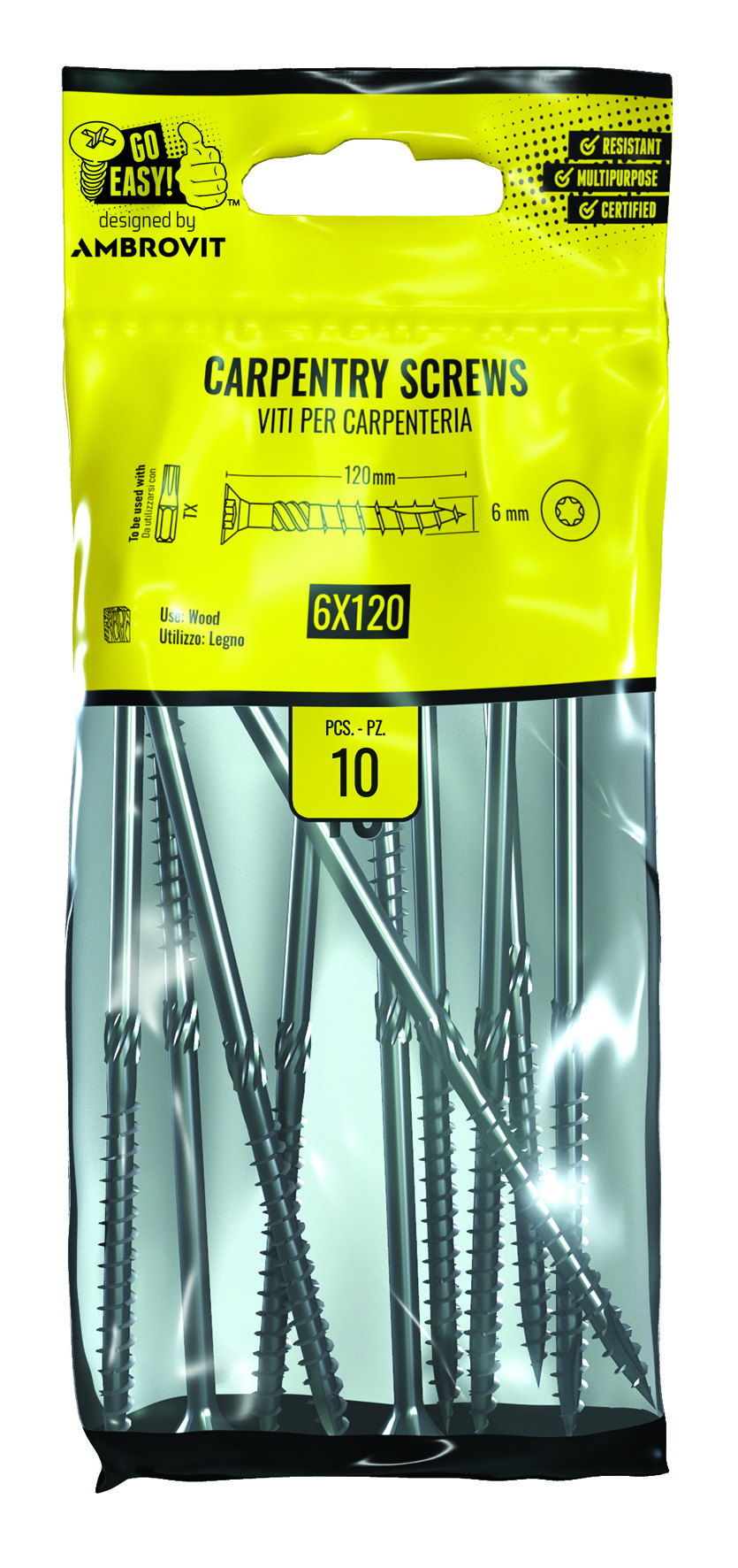 Ambrovit si distingue nel mercato grazie alla sua vasta gamma di prodotti certificati. L’azienda possiede la certificazione ISO 9001, che attesta la gestione di tutte le fasi dei processi interni secondo rigorosi standard di qualità. Inoltre, i prodotti distribuiti da Ambrovit dispongono di importanti certificazioni quali ETA, che garantisce il rispetto delle norme tecniche europee, EN 14592 e EN 14566, che assicurano la conformità dei prodotti da costruzione al mercato CE, le certificazioni ETA 16/0381 per l’intera gamma di viti per carpenteria ed ETA 18/1065 - Option 1 per le viti per calcestruzzo ancoranti. Allo stesso modo, nel lanciare sul mercato del fai da te il suo nuovo progetto, GO Easy, Ambrovit si è attenuto alle stesse considerazioni, garantendo diverse certificazioni ai propri acquirenti. GO Easy, infatti, propone più di trenta tipologie di prodotti certificati EN 14592 e EN 14566, ETA 16/0381 e ETA 18/1065. Le indicazioni generali sono riportate in nove lingue diverse sul retro dei comodi blister.