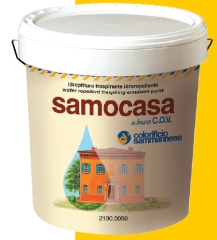 Samocasa è un’idropittura a basso VOC che già rispetta le emissioni che per legge entreranno in vigore nel 2010. Traspirante e idrorepellente, conferisce un aspetto vellutato alle superfici rendendole facilmente smacchiabili. Prodotta nel colore bianco più le basi necessarie per realizzare tutti i colori del sistema Colormaker, offre le seguenti caratteristiche tecniche: essiccazione 5/10 min fuori polvere, 20/30 min al tatto, 2/4 ore in profondità; sopraverniciabilità 4/6 ore.