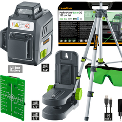 Dal catalogo Vebex, il pratico laser tridimensionale con una circonferenza orizzontale e due circonferenze verticali da 360° a luce verde, completo in set valigetta con: