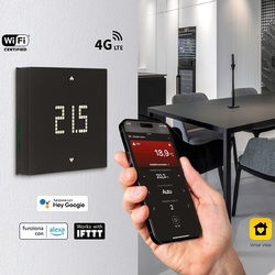Questo è il nuovo termostato Smart da parete sviluppato da Vimar su due tecnologie: con connettività Wi- Fi e 4G LTE, per essere connesso alle reti mobili di ultima generazione. Facile da utilizzare grazie ai comandi intuitivi, il nuovo termostato smart, disponibile anche nell’elegante finitura nera, si presenta con uno schermo animato a matrice LED, che ne semplifica la lettura da distante.