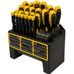 Include 16 giraviti ergonomici con punta magnetica, 48 inserti in vari profili, 16 chiavi esagonali, 20 inserti di precisione, 6 inserti a tubo esagonale, 6 giraviti di precisione, 1 giravite per inserti e 1 giravite per inserti di precisione.