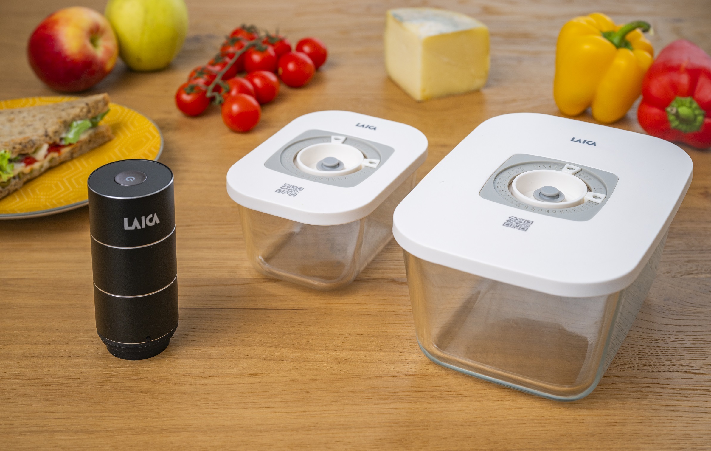 La gamma Laicainclude diversi accessori per il sottovuoto tra cui i Contenitori Smart in vetro per sottovuoto come il VT3307 da 2,7 litri e il VT3306, che in un unico pack comprende due contenitori diversi per due capacità (da 0,5 L e 1,5 L).