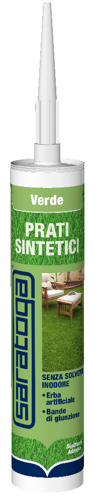 Di colore verde e inodore, Saratoga Sigillante Adesivo Prati Sintetici è un adesivo sigillante a polimeri ibridi, ha consistenza tixotropica, non cola ed è privo di solventi inoltre è calpestabile già dopo 24 ore dall’applicazione.