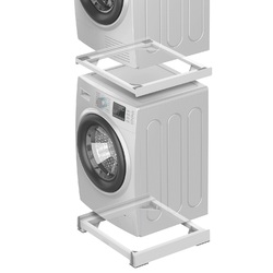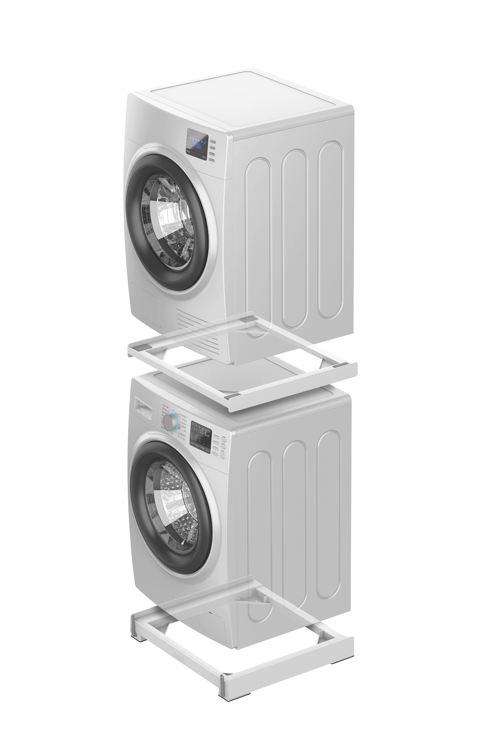 Universale e compatibile con tutte le lavatrici e asciugatrici a carica frontale larghe 60 cm con una distanza massima tra i piedini anteriori e posteriori di 54,5 cm. Inoltre, è compatibile con asciugatrici di profondità massima di 70 cm. Il kit sovrapposizione lavatrice asciugatrice è premontato e semplice da installare, includendo anche una cinghia di sicurezza per una maggiore stabilità.