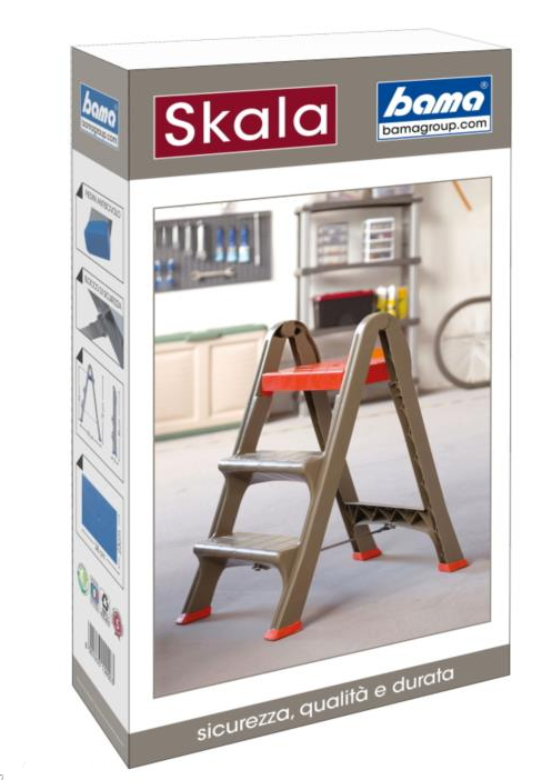 Lo sgabello Skala proposto da Bama a tre gradini è stabile, leggero e robusto.