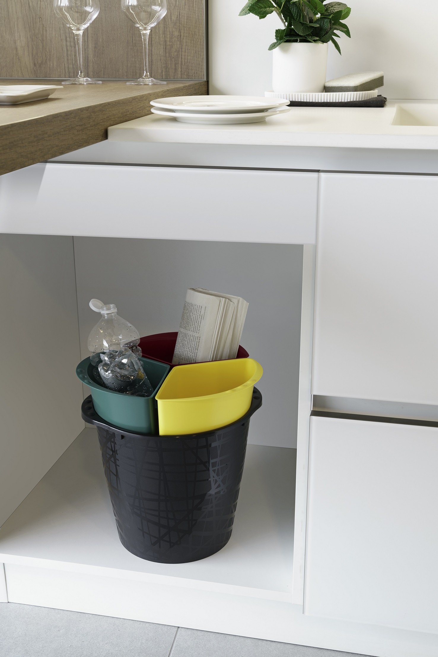 È comodo da spostare grazie alle pratiche maniglie, dotato di tre contenitori estraibili da 4.5 lt cadauno, facile da pulire, prodotto in Italia con resine 100% riciclabili.