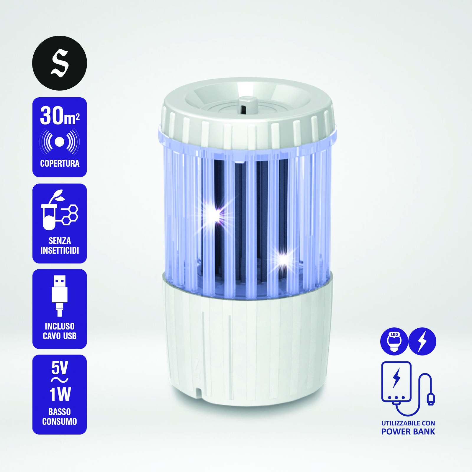 Costruito con materiali termoplastici avanzati, è resistente, leggero e versatile. Ideale per ambienti interni ed esterni, può essere alimentato anche tramite Power Bank, rendendolo la soluzione perfetta per chi cerca protezione continua, anche in viaggio o in campeggio.