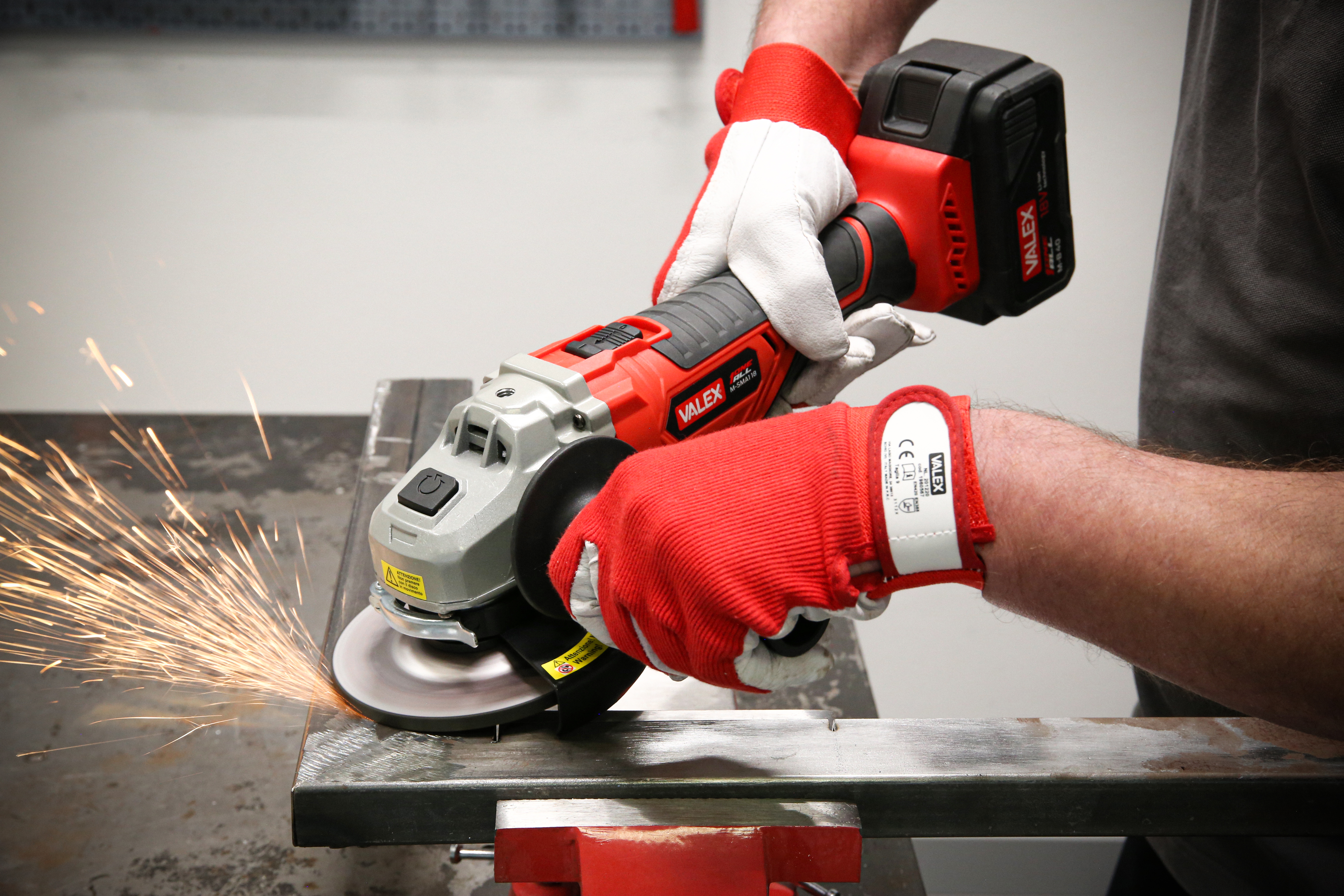 La smerigliatrice angolare M-SMA1 18 Valex Oneall (cod. 1429216) è alimentata da una batteria al litio da 18V e lavora con una velocità a vuoto di 8.500 giri/min. Il disco ha Ø115/125 mm e attacco di tipo M14. Fornita di impugnatura anteriore fissabile in 3 posizioni.
