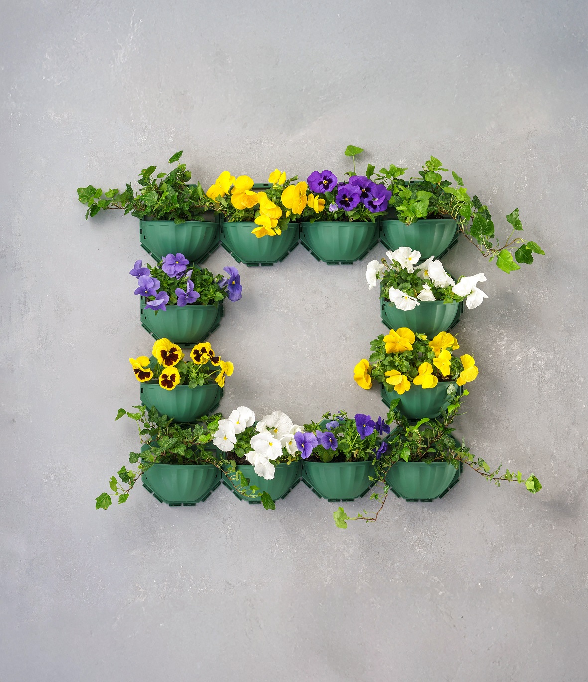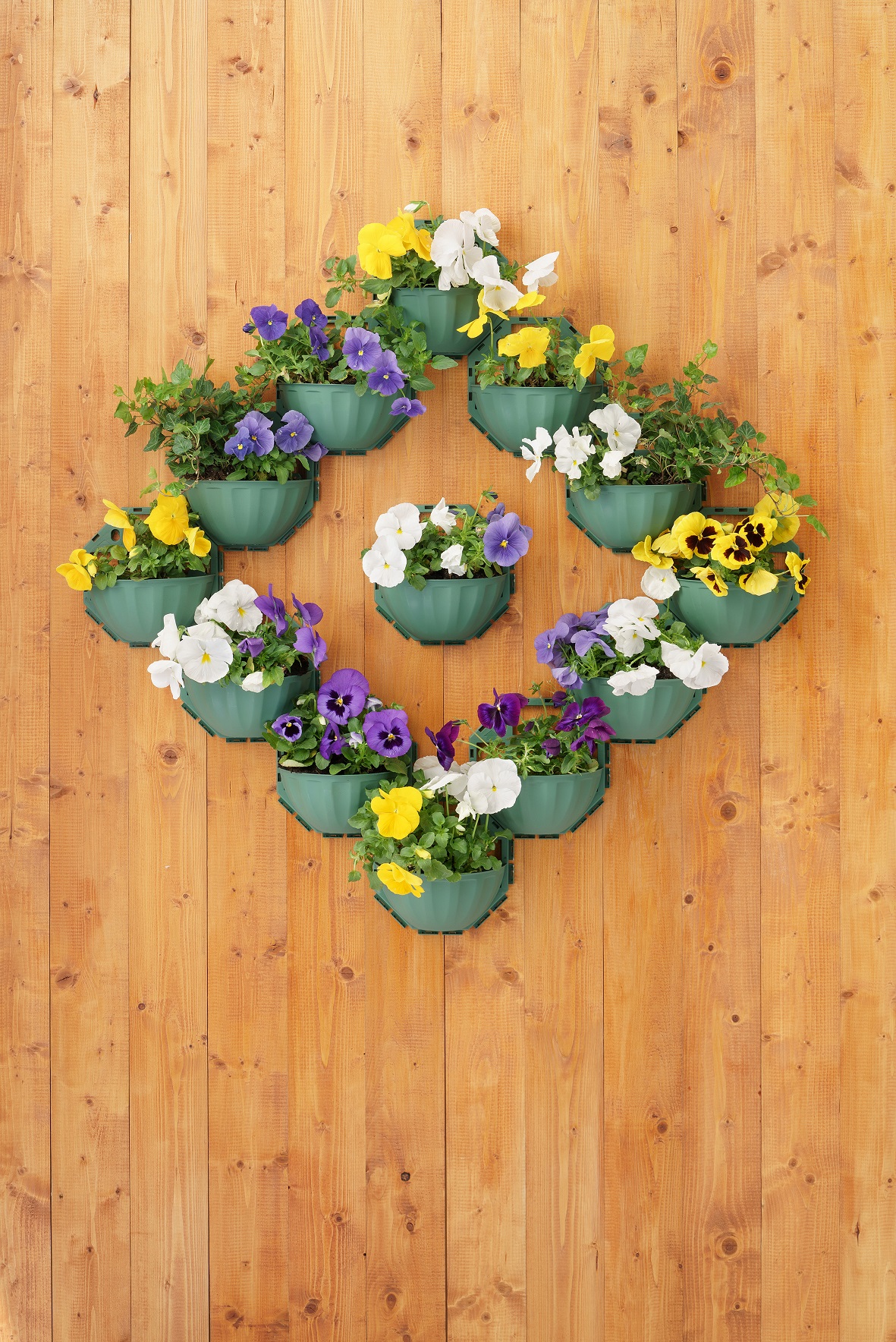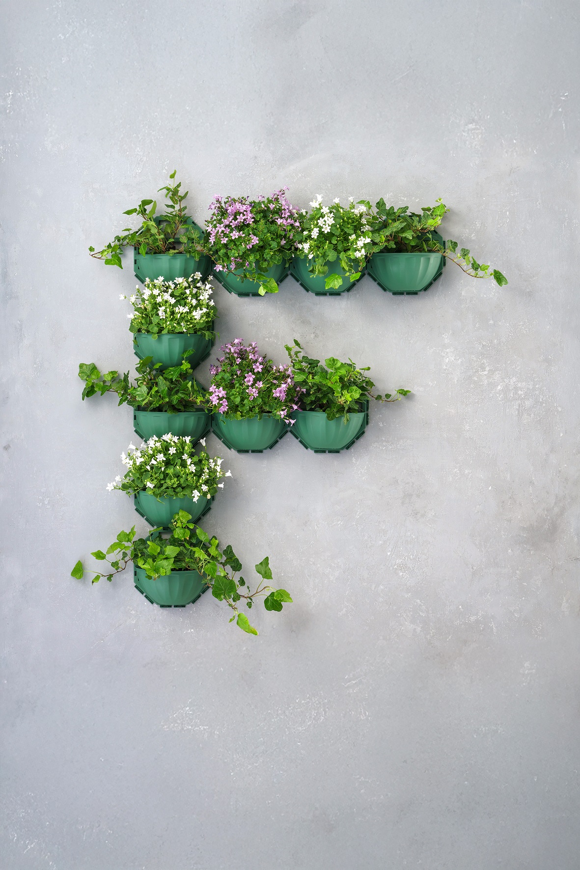 Il set base è composto da sei fioriere e consente di realizzare le più svariate forme: greche, lettere, scritte, simboli, figure geometriche e molto altro. Ideale per arredare con stile gli esterni della casa, per dare un tocco green all’ufficio, ma anche per abbellire gli edifici pubblici con una composizione floreale. Gerla puzzle è facile da assemblare e da appendere a ogni tipo di parete (viti e tasselli non inclusi); è dotata di sistema anti sgocciolamento: la goccia cade perpendicolarmente senza sporcare il muro. Disponibile nel colore verde muschio per mimetizzarsi meglio con le composizioni. Realizzata in resina 100% riciclabile. 100% Made in Italy.