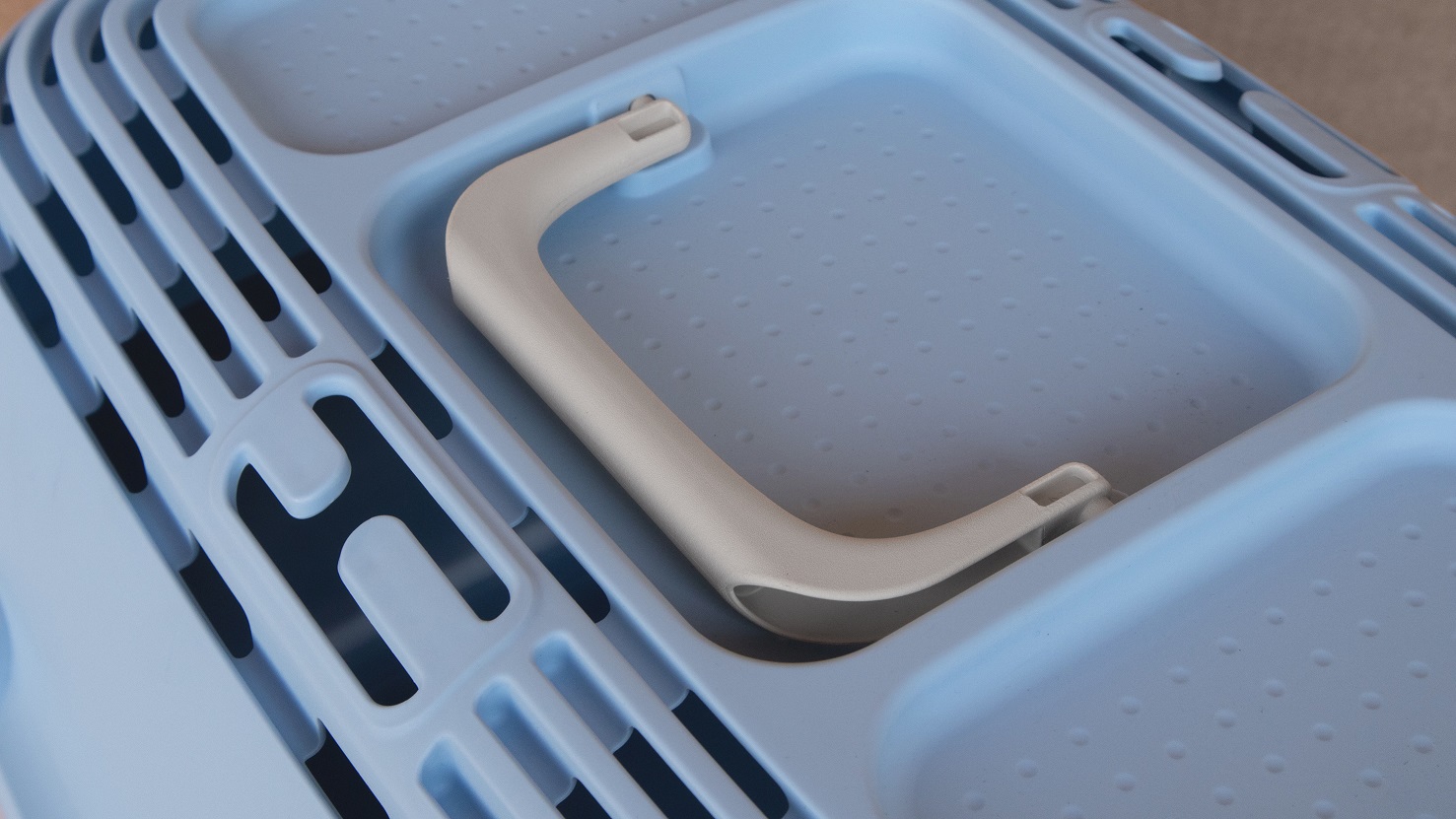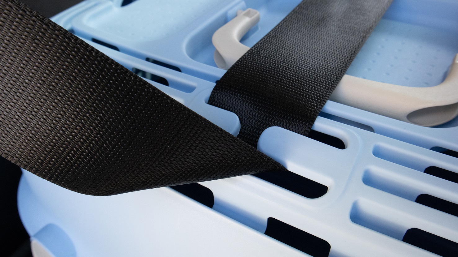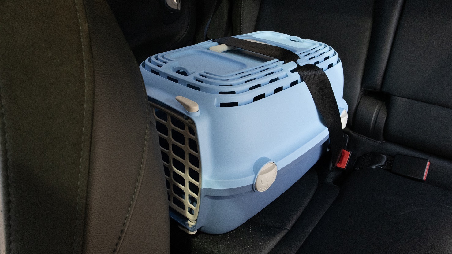Le clip arrotondate accompagnano in maniera silenziosa l’apertura e la chiusura, mentre la maniglia ergonomica con blocco anti-rumore consente di portare il trasportino con stabilità. L’interno antiscivolo, i fori per tracolla e il sistema di aggancio alla cintura di sicurezza completano un set di soluzioni pensate per offrire un’esperienza di trasporto sicura.