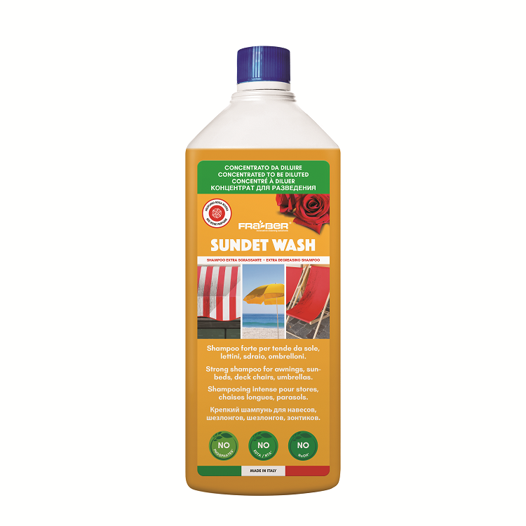 Al termine dell’estate è il momento perfetto per prendersi cura degli arredi da esterno. Sundet Wash di Fra-Ber è il detergente studiato appositamente per la pulizia profonda di tende da sole, ombrelloni, lettini e superfici tessili da giardino, spiaggia o piscina.