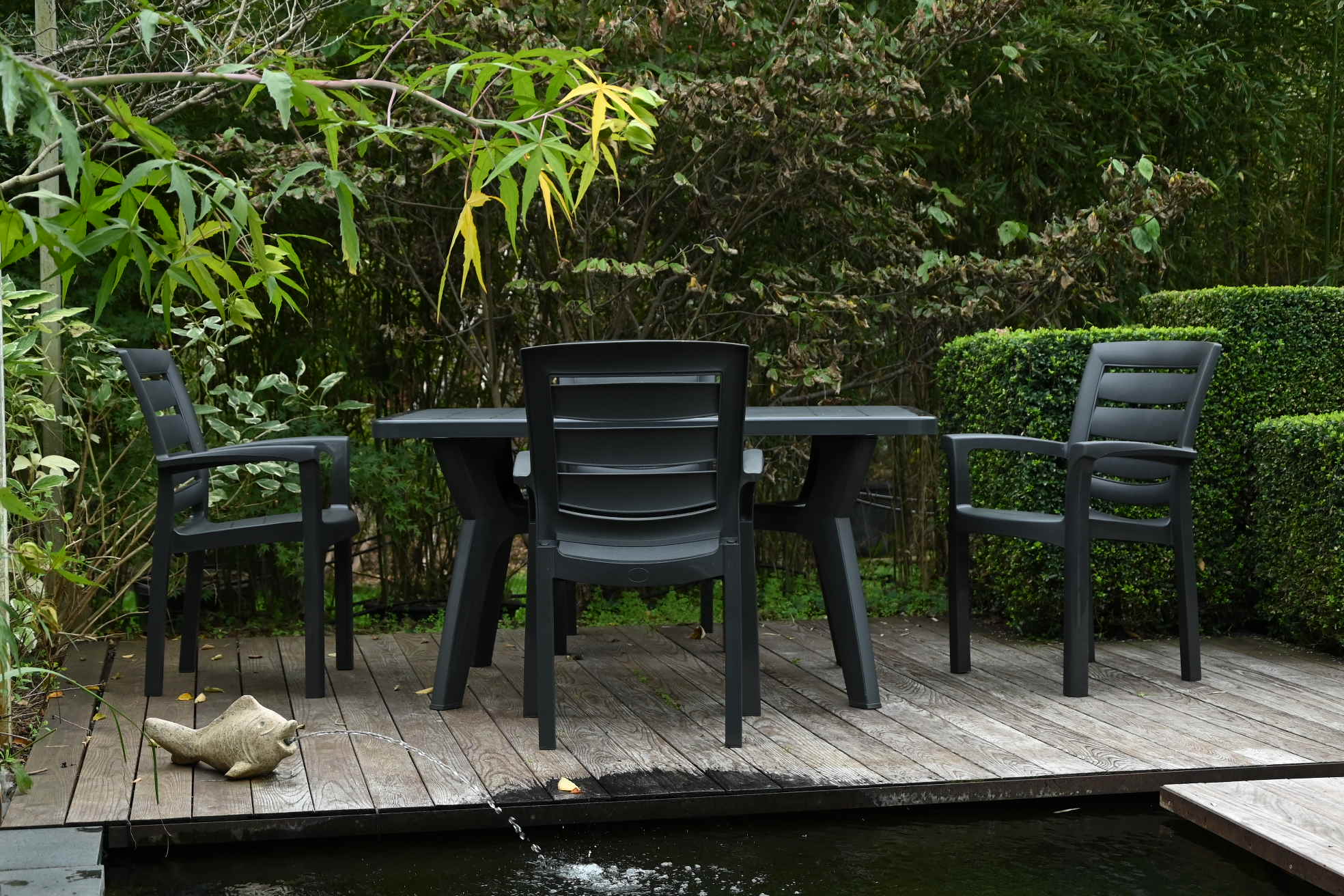 La Poltrona Maxi Amazon e il Tavolo Pagoda 140x85, entrambi in polipropilene, sono ideali per giardini e terrazze. Linee sobrie, comfort e qualità Made in Italy.
