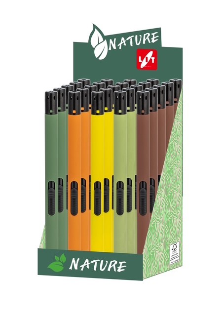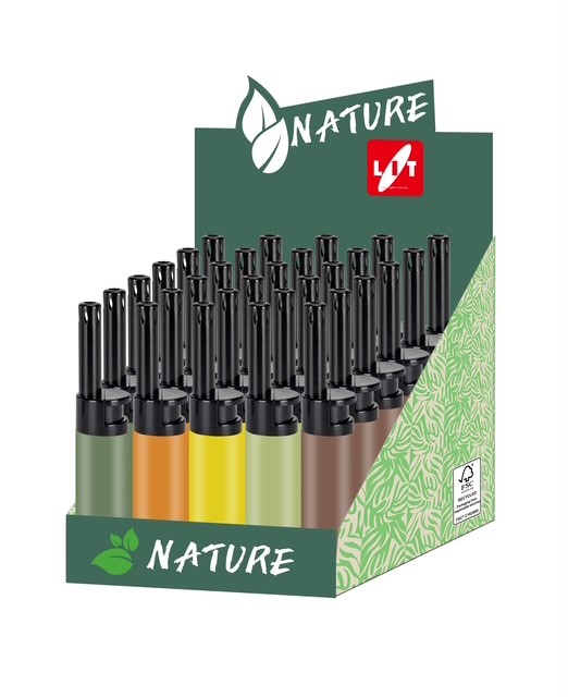 Lit Gas presenta la nuova linea Nature in colori accattivanti e di grande tendenza. I prodotti sono presentati in display da banco in materiale certificato FSC che assicura che l’intera filiera legno-carta da cui derivano sostiene la gestione forestale responsabile.