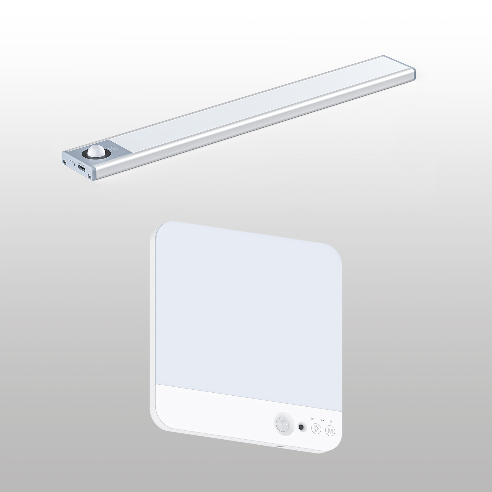 Caratterizzati da un design minimalista, sono ricaricabili tramite USB‑C e dotati di sensore di presenza, per illuminare solo quando serve. Completa la dotazione la regolazione CCT selezionabile (3000 K / 4000 K / 6500 K) tramite selettore, con in aggiunta anche intensità luminosa regolabile in modo continuo.